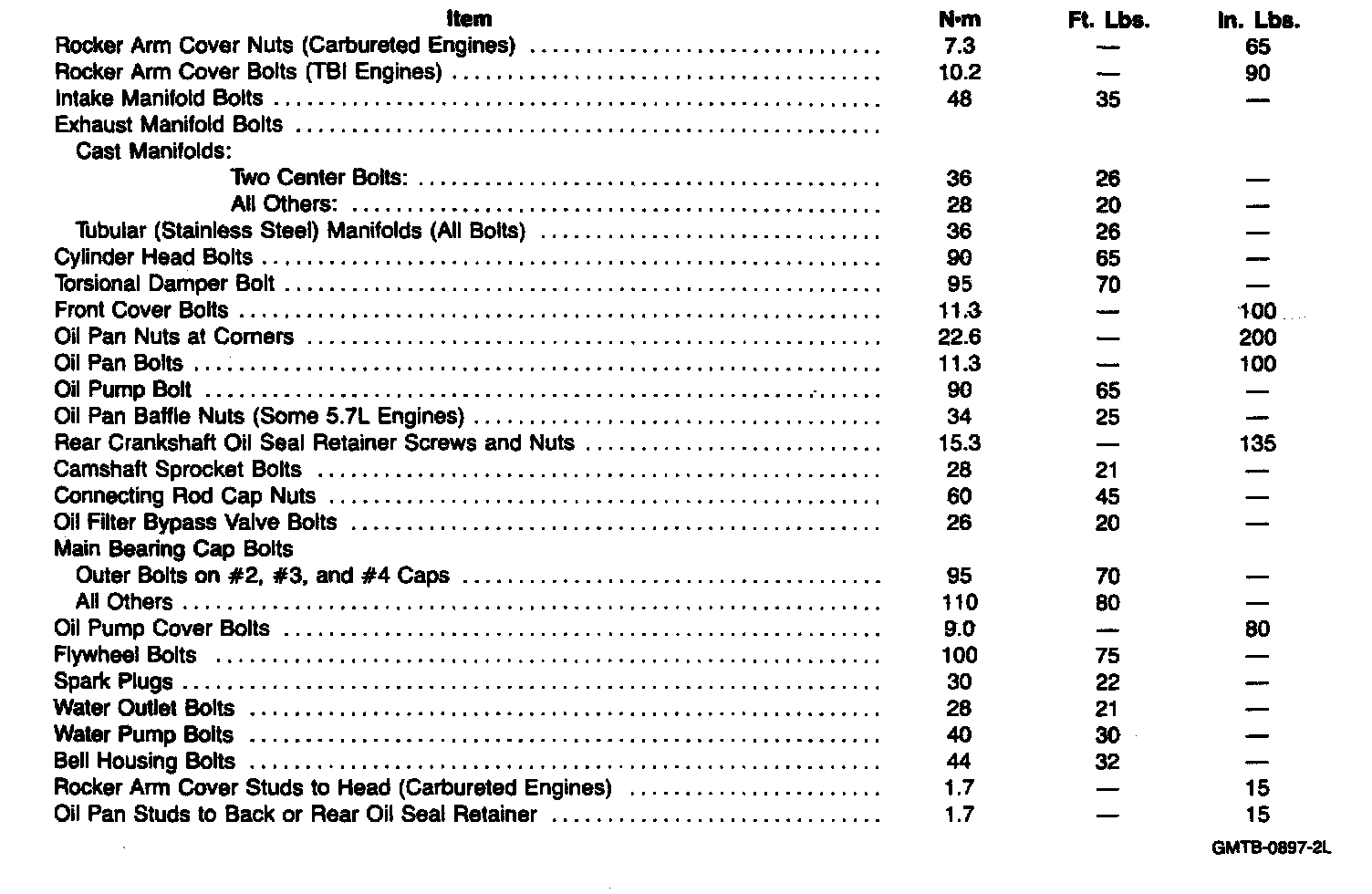 Torque Specifications: