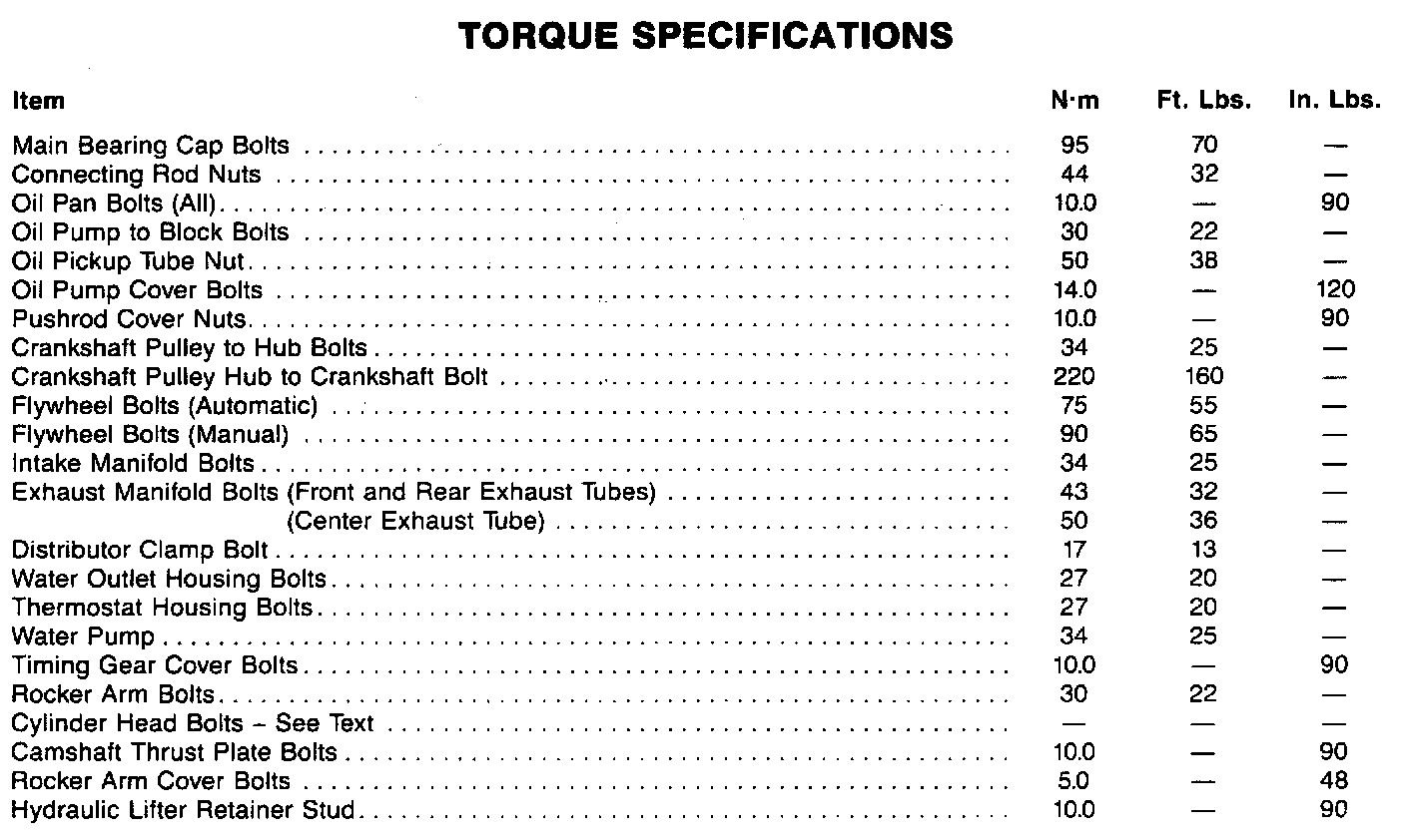 Torque Specifications: