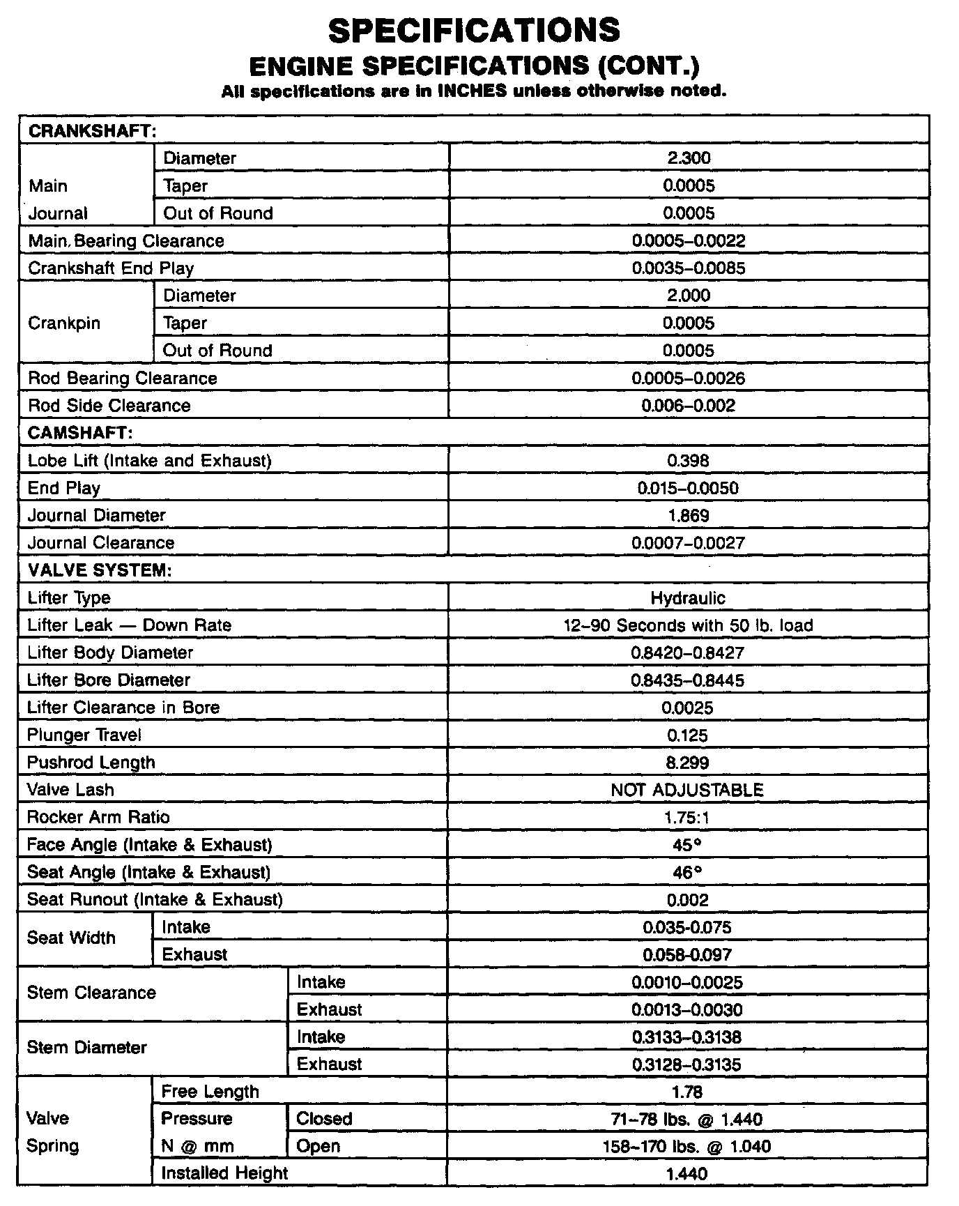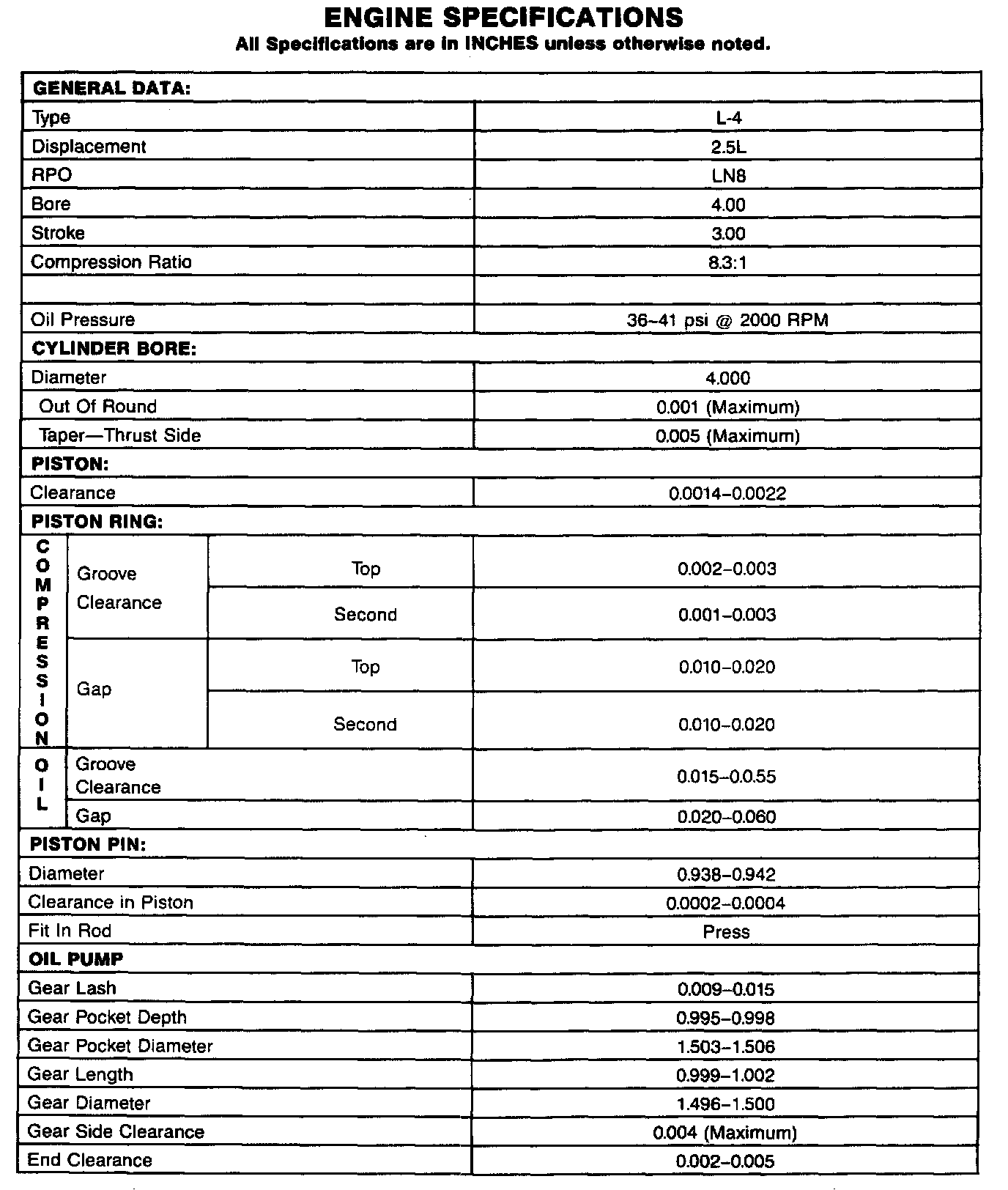 Engine Specifications: