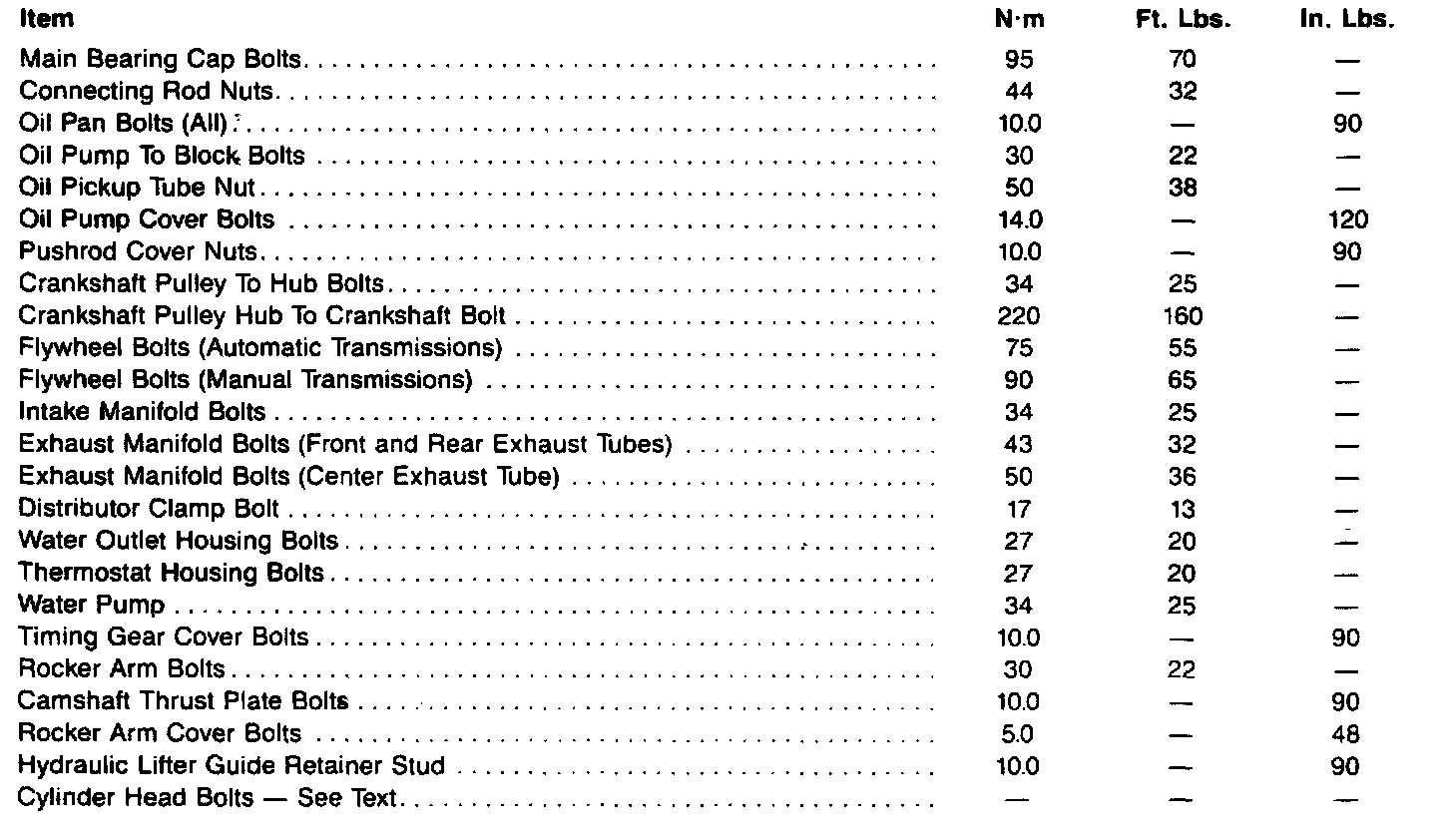 Torque Specifications: