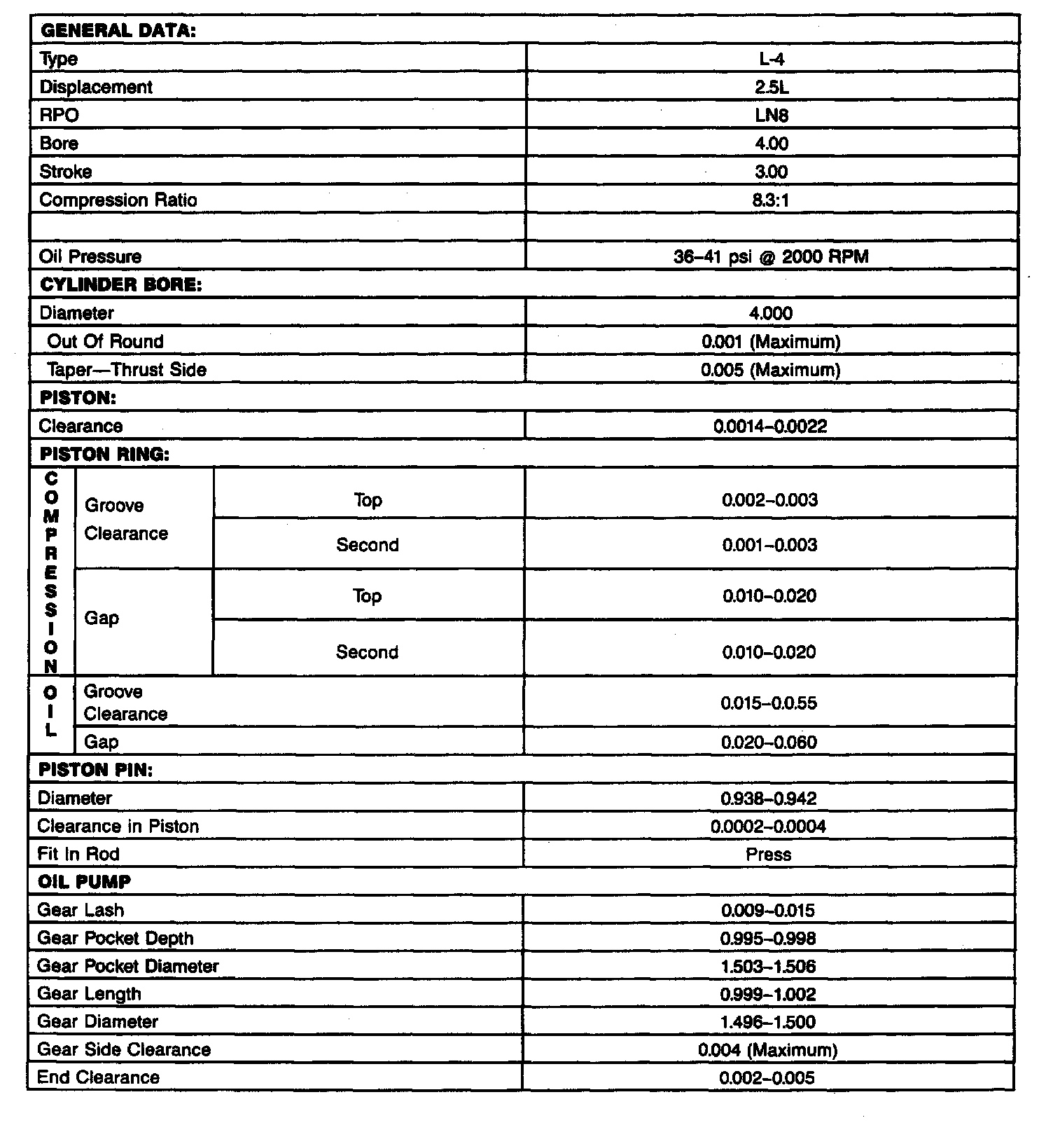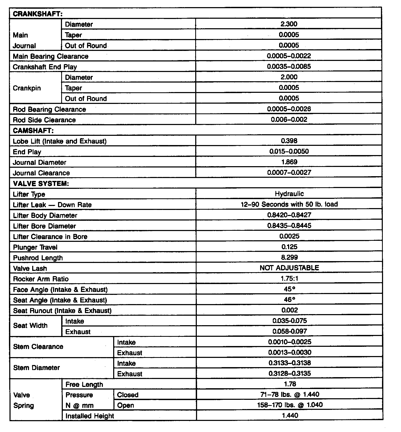Engine Specifications (INCHES):