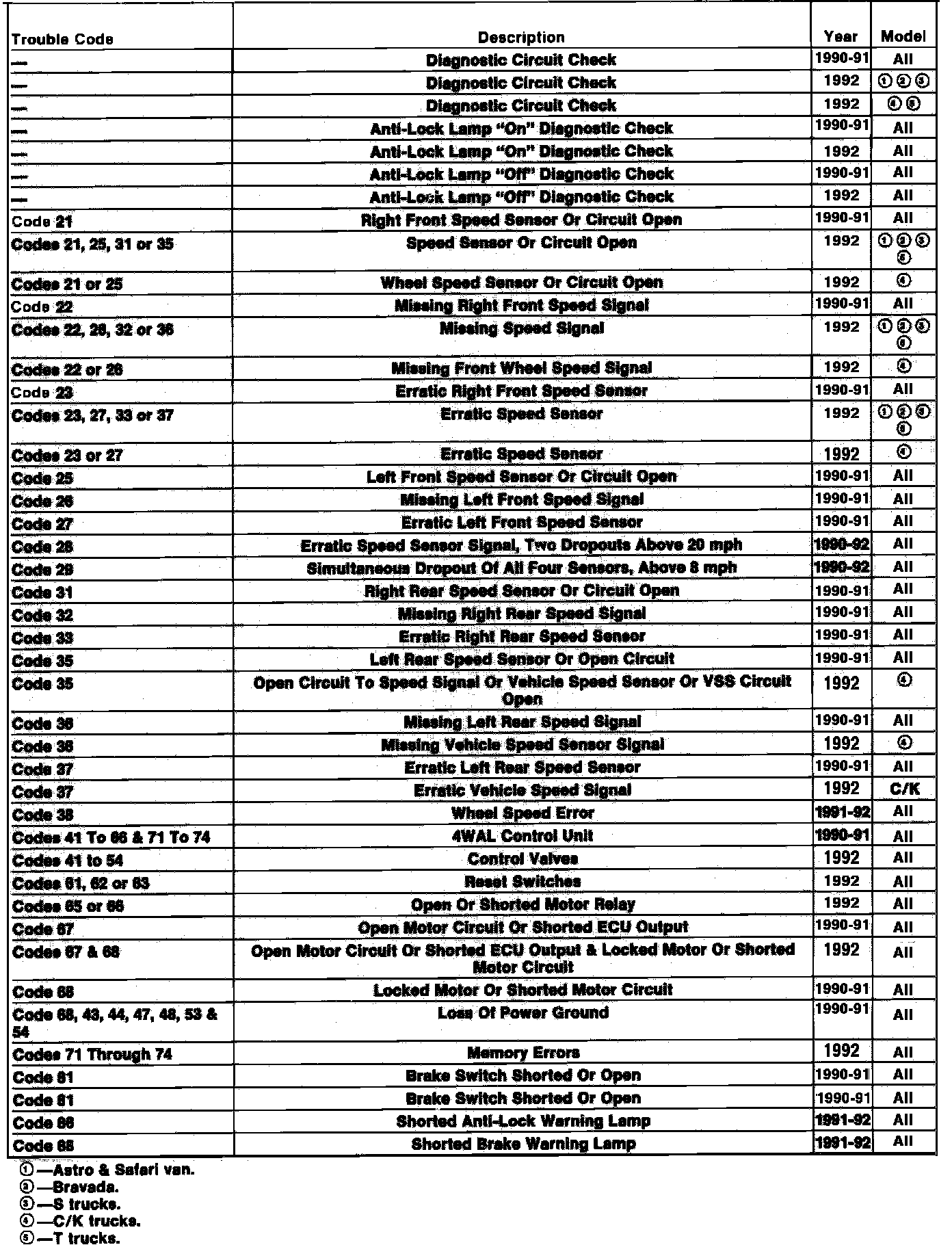 Astro Van L AWD V6-262 4.3L
