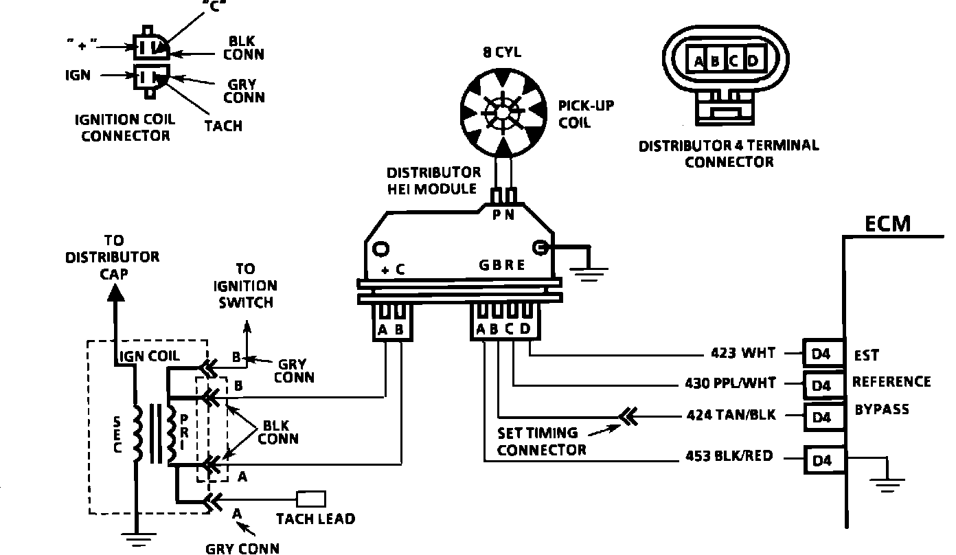 Wiring Diagram For Chart C-4B - Ignition System Check (Remote Coil/Sealed Module Conn. Dist.):