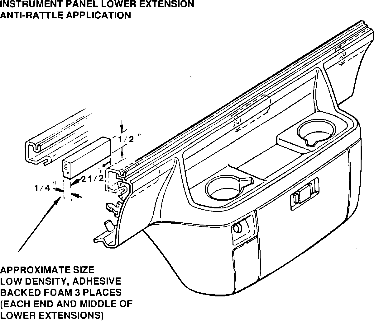 To correct, it is necessary to install foam adhesive backed strips to to back side of the instrument panel lower extension.