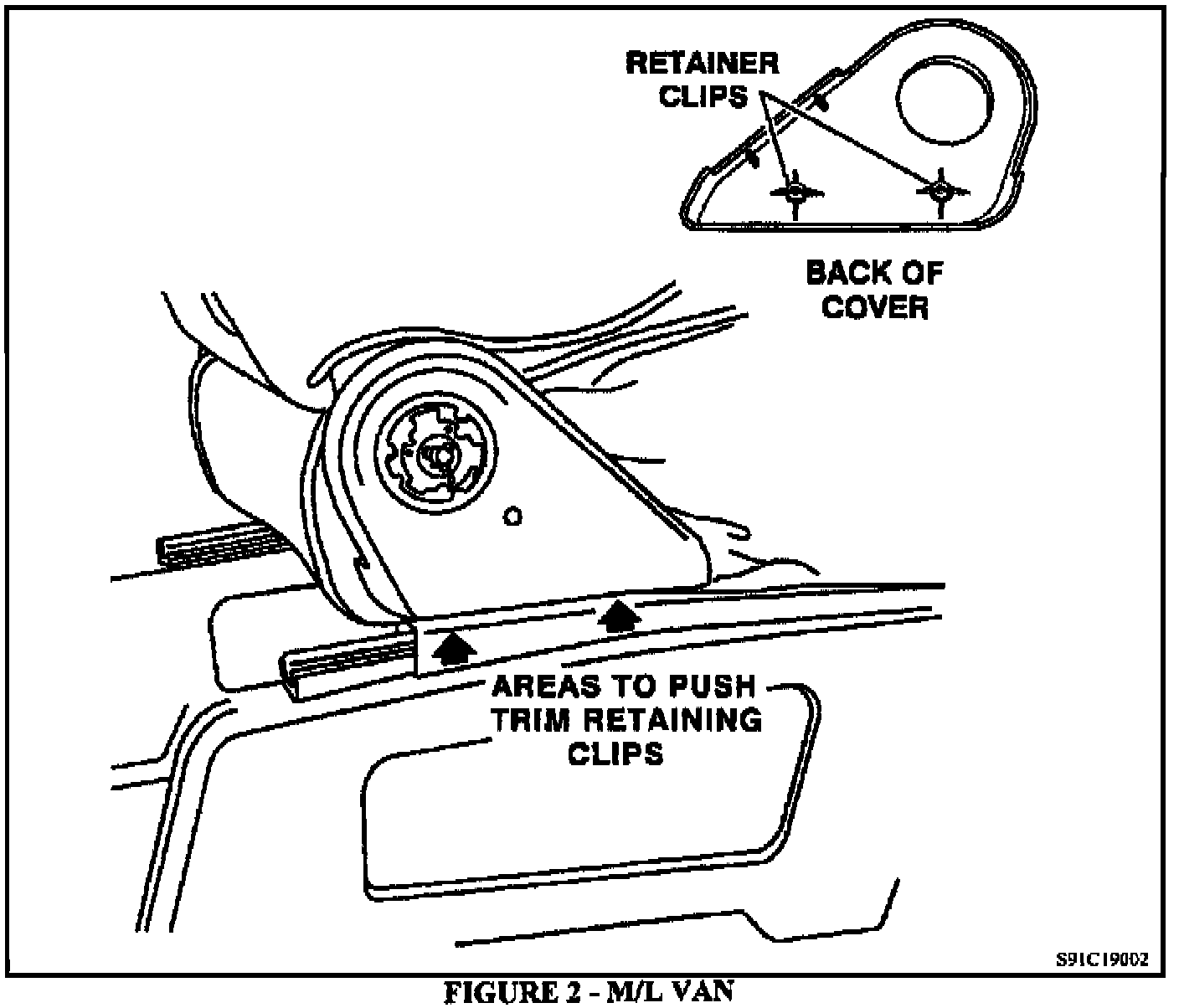 6. Remove the recliner trim cover by inserting a screw driver or equivalent behind the cover and pushing out on the retainer clips (Figure 2).