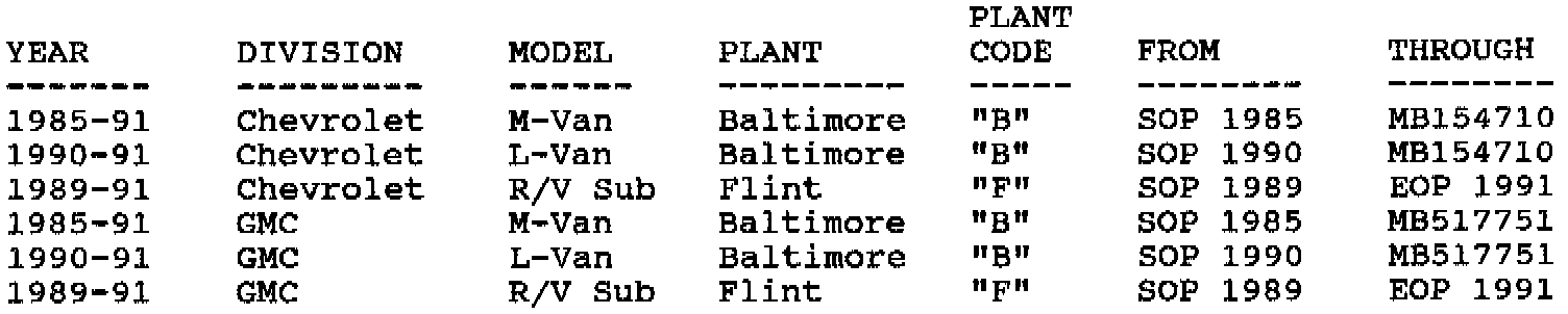 Involved are certain 1985-91 M-Van, 1990-91 L-Van and 1989-91 R/V Suburban model vehicles equipped with bucket seats with knob type recliner mechanisms and built within the VIN breakpoints