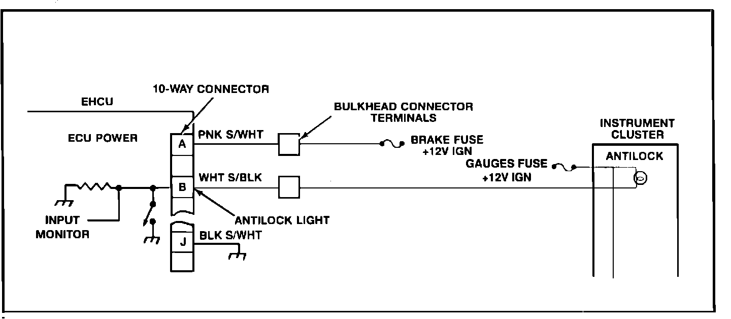 An input monitor circuit within the ECU allows it to detect an open or shorted circuit for the "Antilock" light during the initial test for each ignition cycle:
