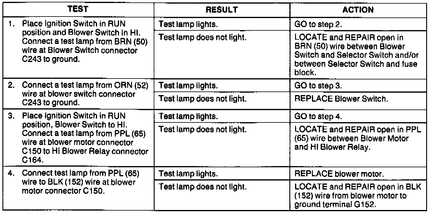 A/C Blower Motor Inop: