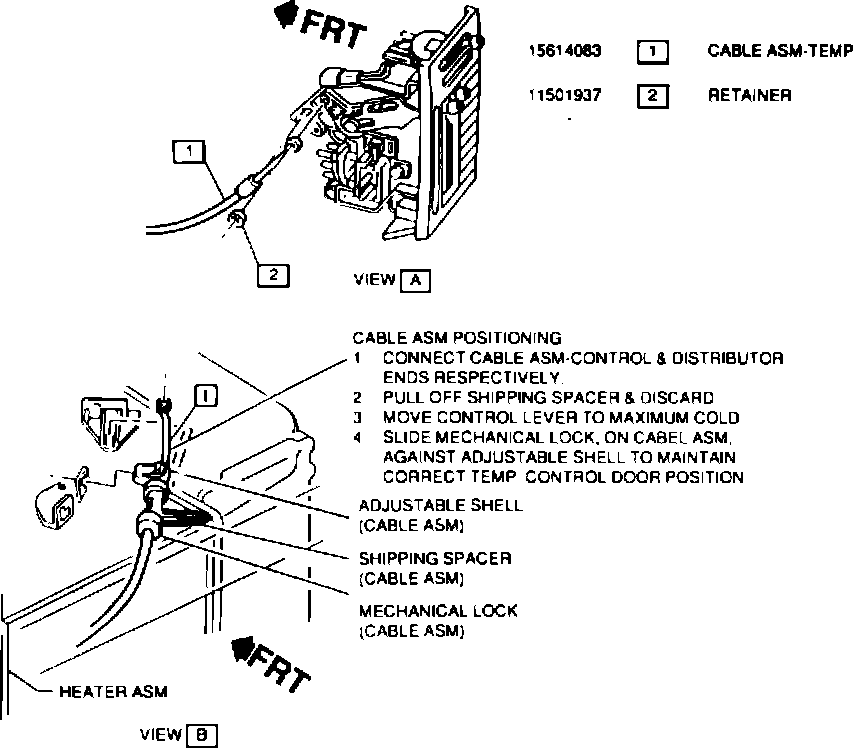 A new temperature control cable is utilized on the 1990 WL vans. Adjustment is preset during assembly. Once preset, it cannot be readjusted, a new cable has to be installed. There is no turnbuckle for adjustment as on previous models.