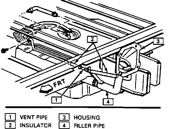 The fuel tank is located under the rear of the vehicle and is the fuel reservoir. The tank has a vertical baffle installed to prevent fuel slosh. The fuel pump and fuel level sending unit assembly are mounted in the fuel tank as one assembly. The fuel tank assembly also consists of the fuel filler neck and filler cap.