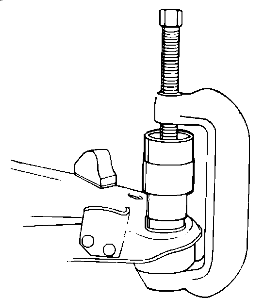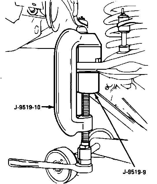 1. Lower ball joint to the lower control arm and press into place using J-9519-16 and J-9519-30 adaptors, (Figure 3).