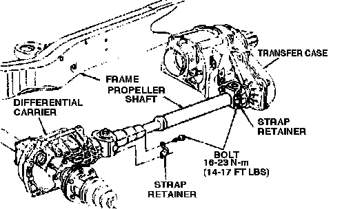3. Disconnect propeller shaft at front axle and support out of way.