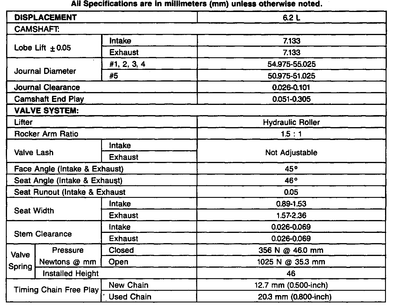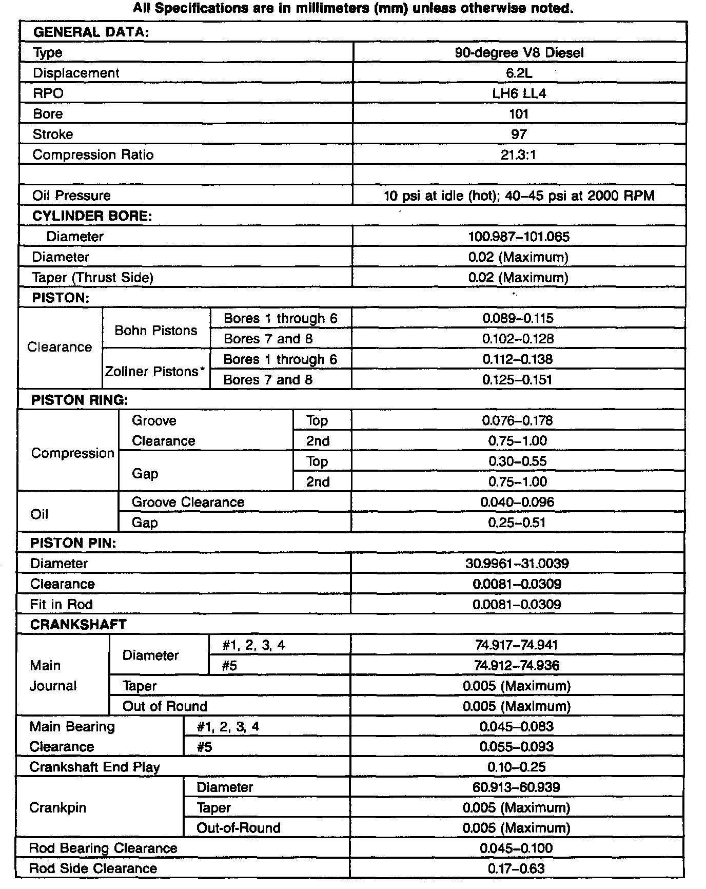 Engine Specifications: