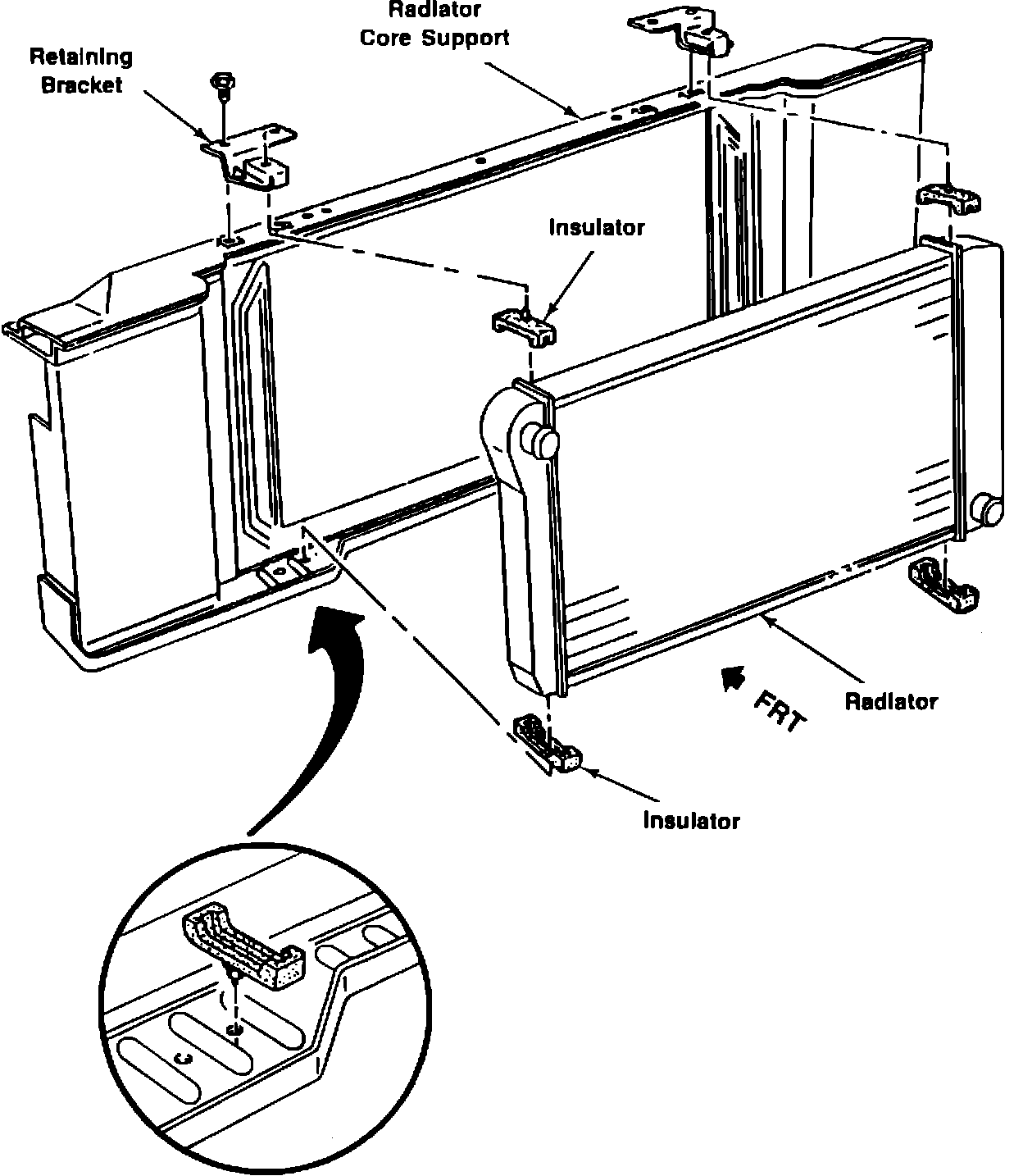 19. Install new upper radiator insulators and retaining brackets (see Figure 3).