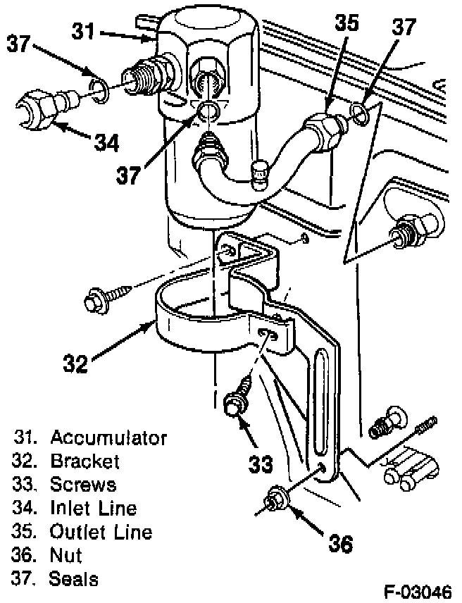 The high pressure fitting is located either in the high pressure vapor line or muffler, while the low pressure fitting is located on the accumulator.