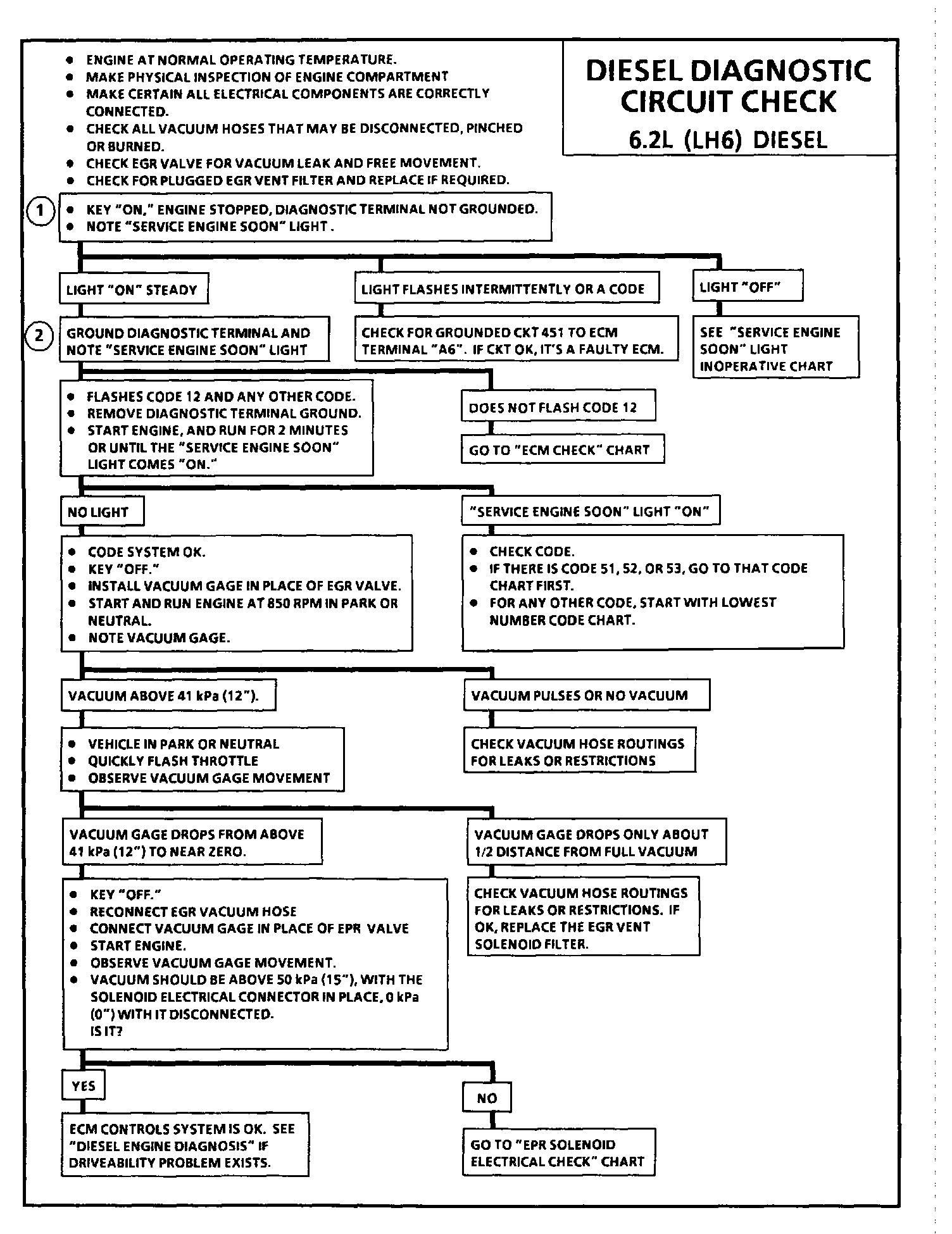 All diagnosis should start with the Diesel Diagnostic Circuit Check.