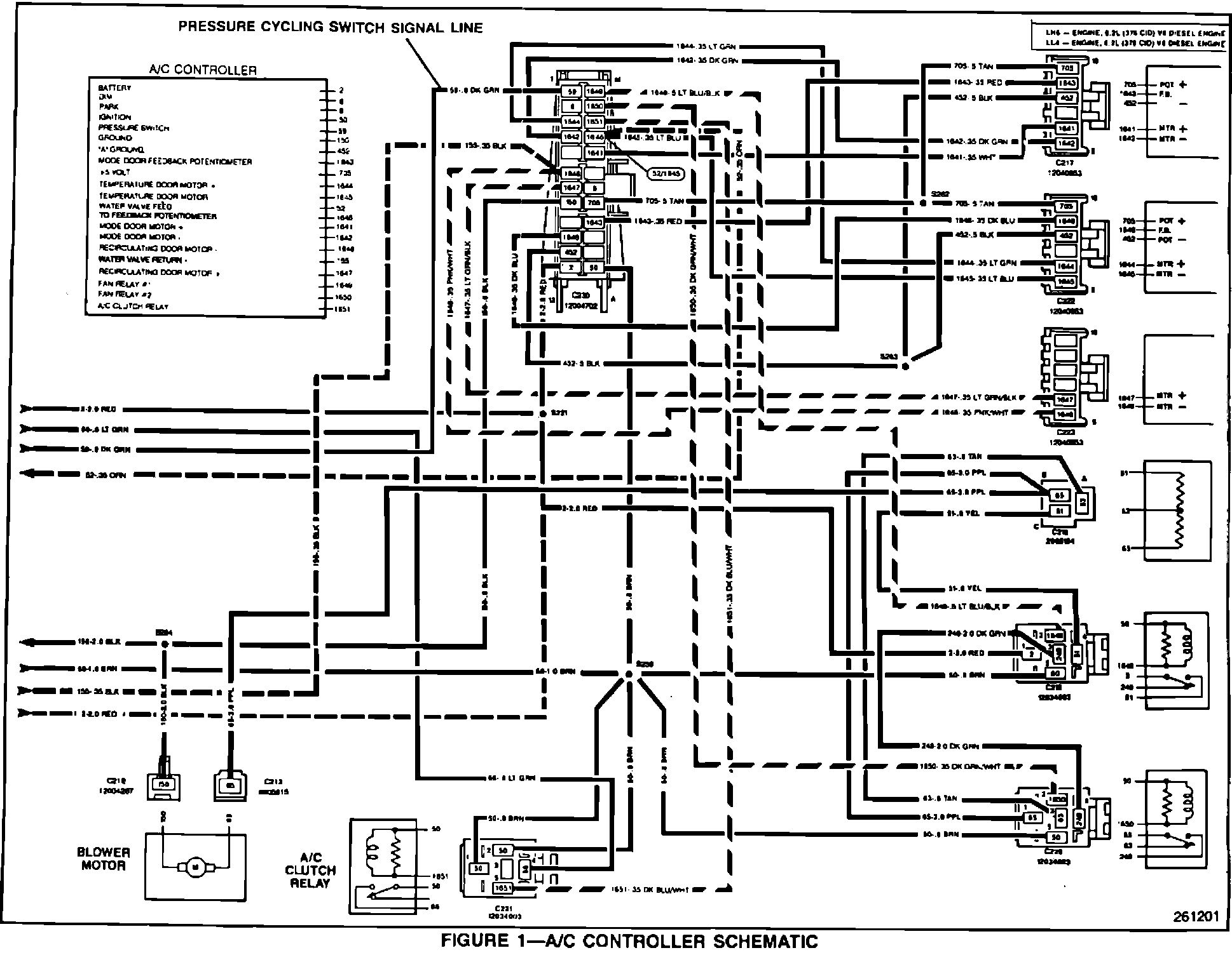 Some owners of 1991-1992 C/K vehicles may comment that the A/C letters in the middle of the control head face are flashing. The HVAC control system used on 1991 and 1992 C/K vehicles incorporates a low A/C charge warning system. If a low charge is detected, the control head will not allow the compressor to engage and the A/C letters in the middle of the control head face that usually signify A/C operation will blink.