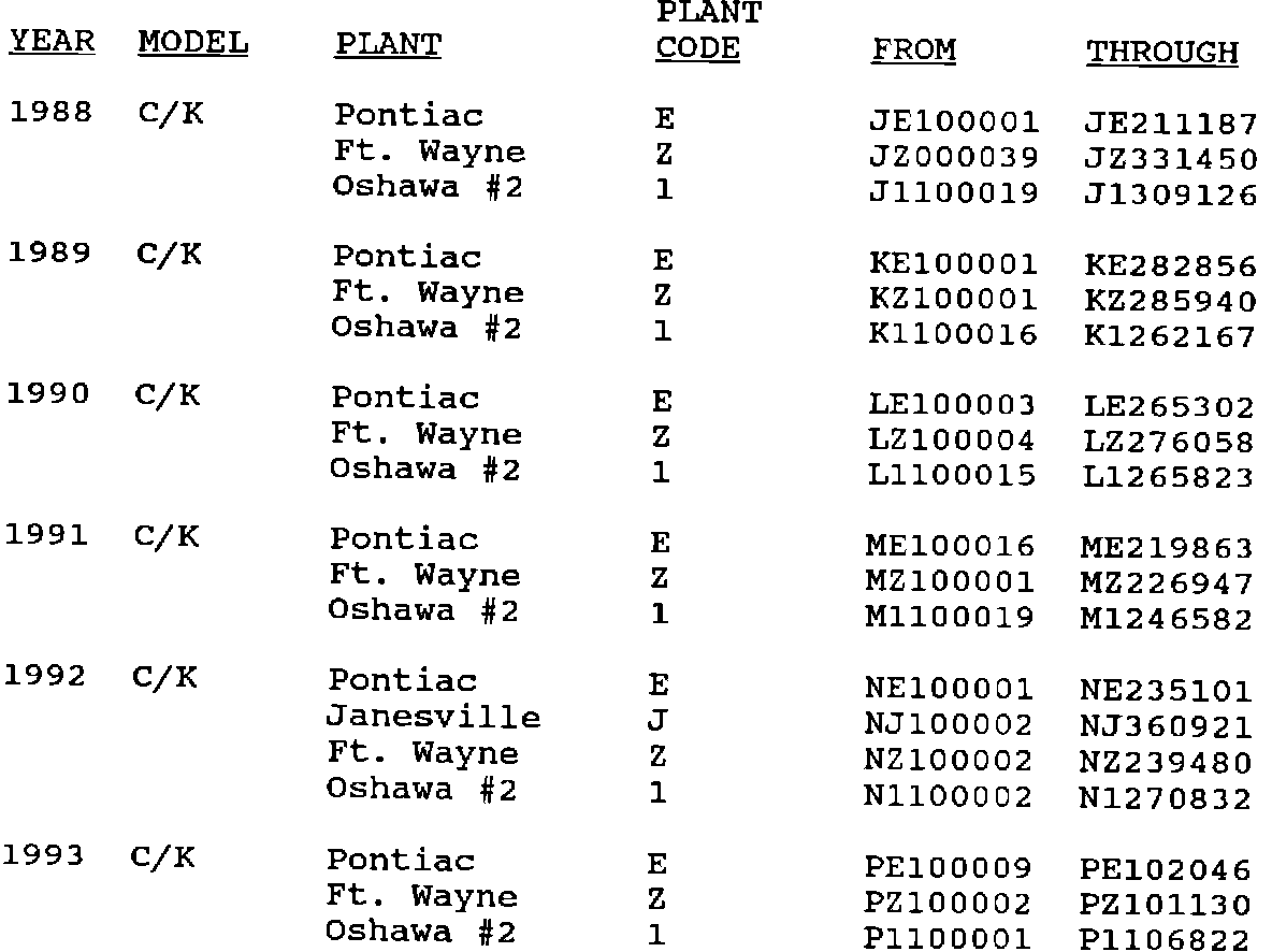 Involved are certain 1988-93 C/K model trucks equipped with 5.0L, 5.7L & 7.4L engines and 4L60, 4L60-E & 3L80 automatic transmissions built within the following VIN breakpoints: