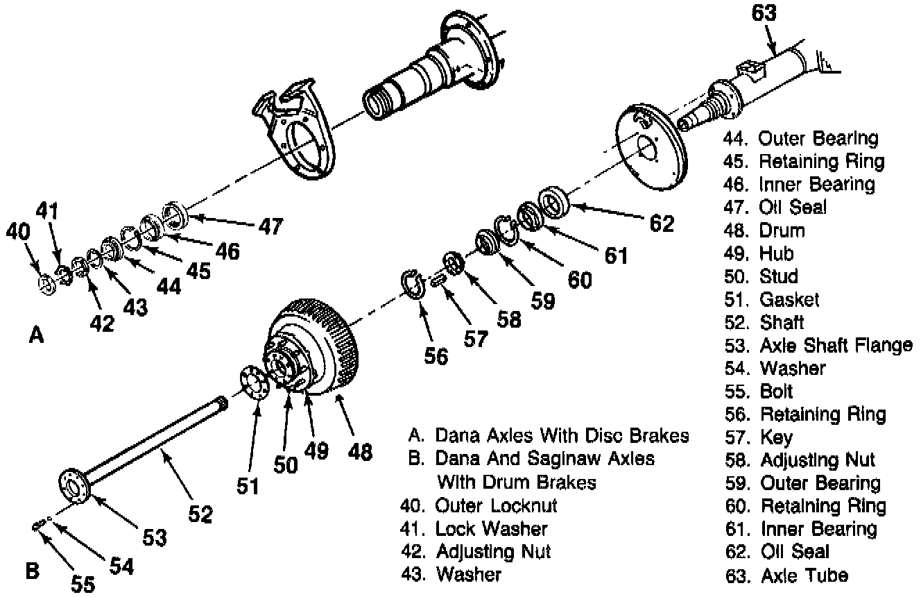 b. Apply a light coat of high melting point bearing lubricant to the contact surfaces and the outside of the axle tube.