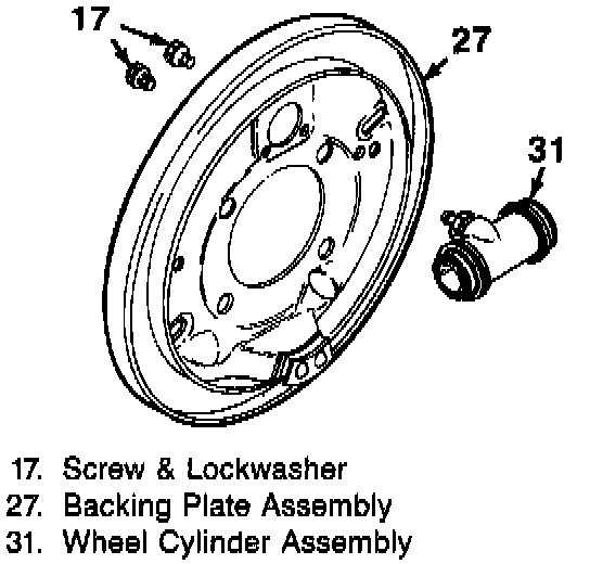 2. Install wheel cylinder bolts and tighten to backing plate.