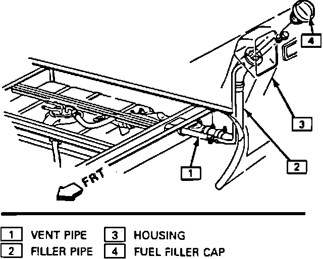 The fuel tank is located under the rear of the vehicle and is the fuel reservoir. The tank has a vertical baffle installed to prevent fuel slosh. The fuel pump and fuel level sending unit assembly are mounted in the fuel tank as one assembly. The fuel tank assembly also consists of the fuel filler neck and filler cap.