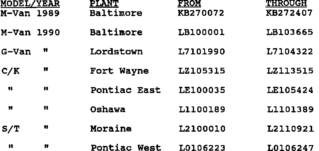 Involved are certain 1989 Chevrolet M-Vans & 1990 G-Van, M-Van, C/K & S/T Trucks equipped with 4.3L V-6 engines (RPO LB4) and built within the following breakpoints: