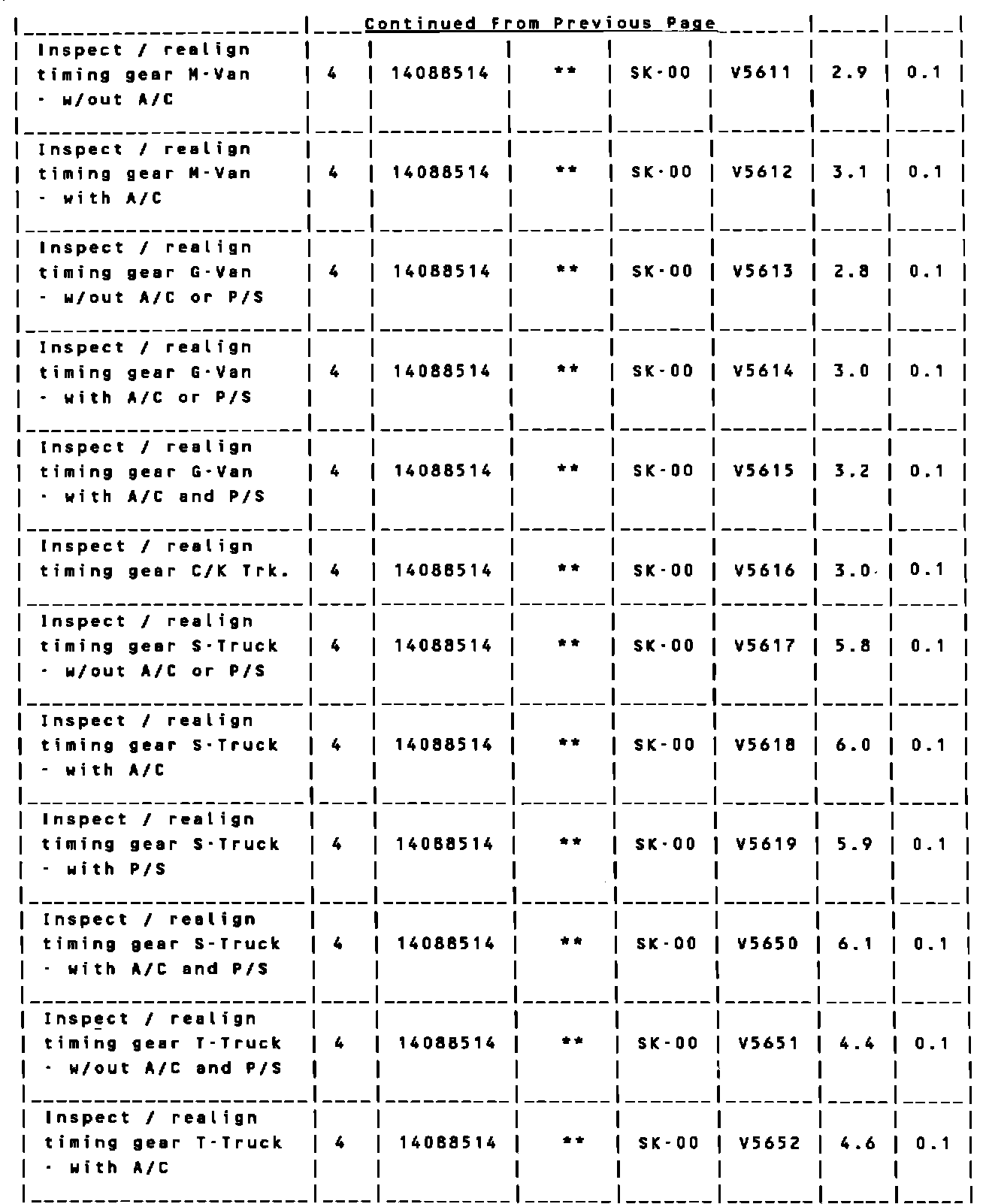 Model and Year: 1989 M-VAN & 1990 G-VAN, M-VAN, C/K TRUCK & S/T TRUCK - 4.3L (RPO LB4) V-6 ENGINE
