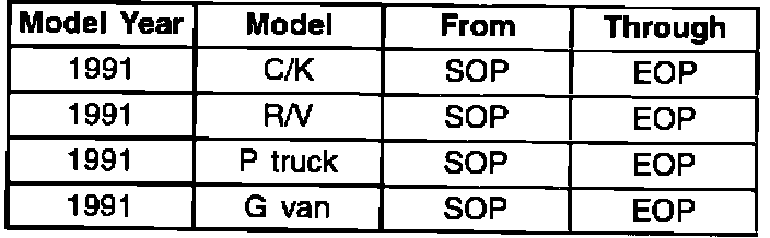 ALL 1991 CHEVROLET AND GMC TRUCK C/K, R/V, P TRUCKS, AND G VANS EQUIPPED WITH THE HYDRA-MATIC 4L80-E/4L80-EHD AUTOMATIC TRANSMISSION (RPO-MT1)