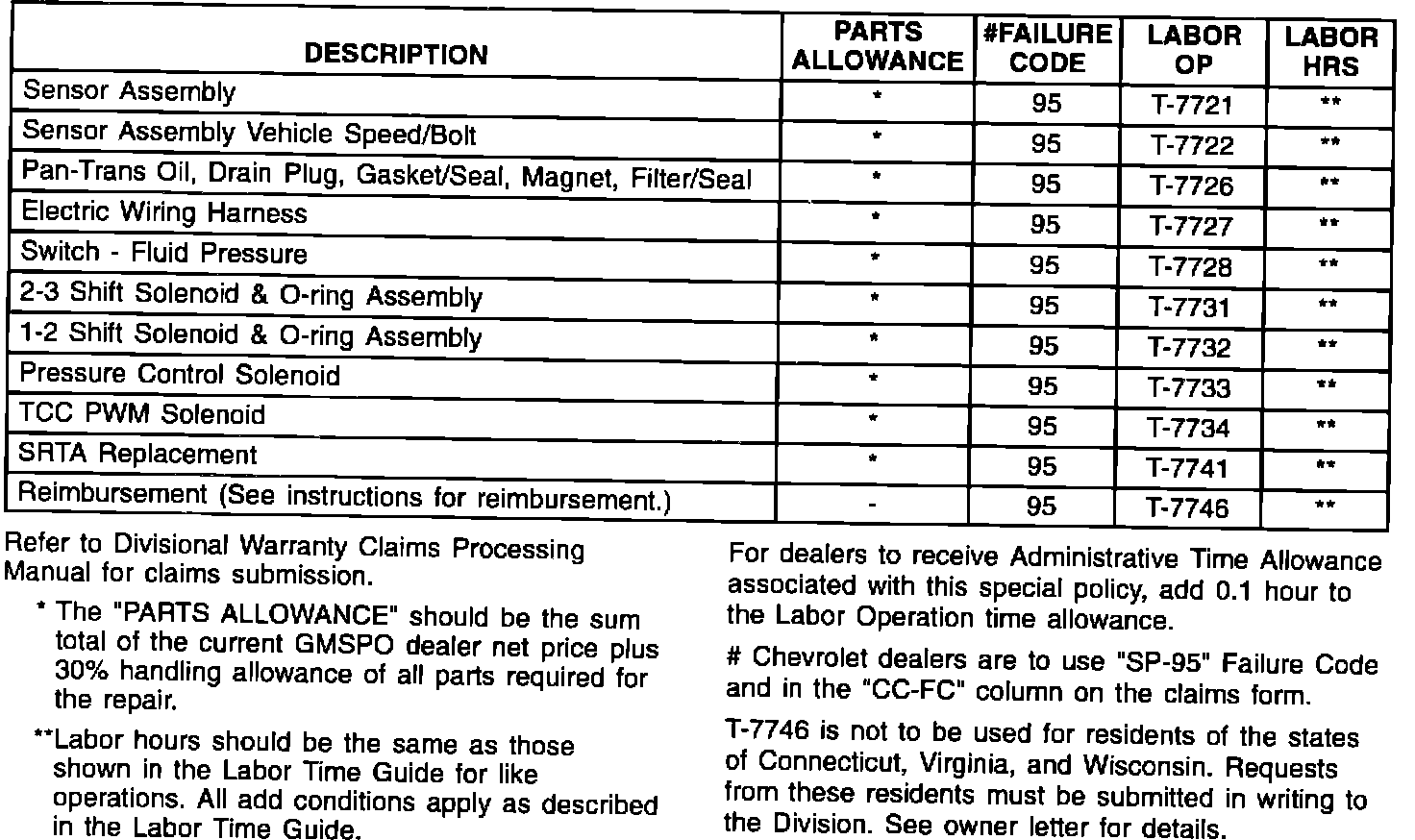 Customer claims for reimbursement on previously paid 4L80-E/4L80-EHD transmission repairs, including the $100 deductible, are to be submitted to an authorized Chevrolet or GMC Truck dealer by December 31, 1994 (the time limitation for presenting the original paid receipt may be longer depending upon the law in your state). The reimbursement should not exceed the amount paid by Chevrolet or GMC Truck for the applicable labor operation. If the amount exceeds the warranty rate, dealers are to contact Chevrolet or GMC Truck for reimbursement approval.