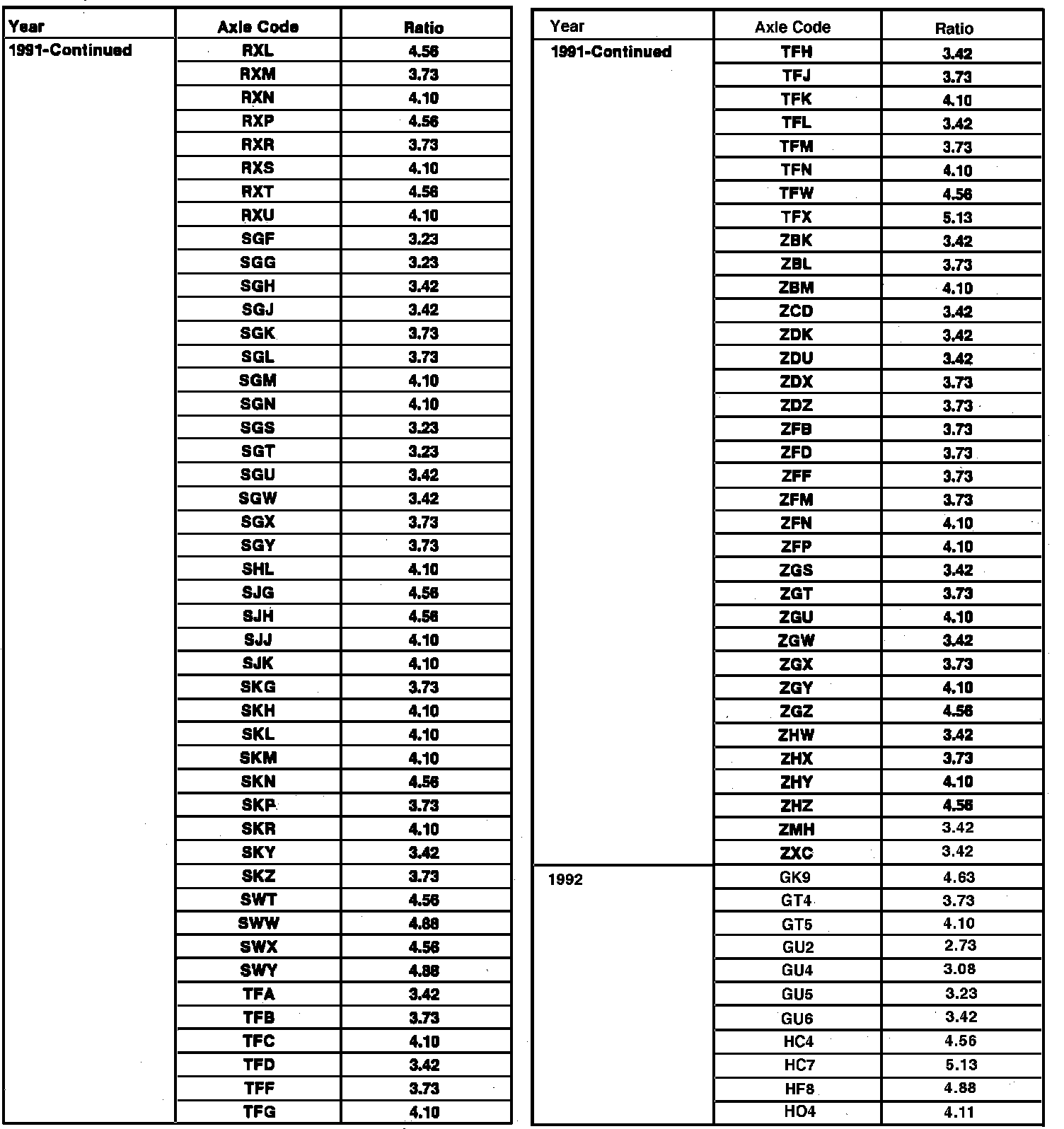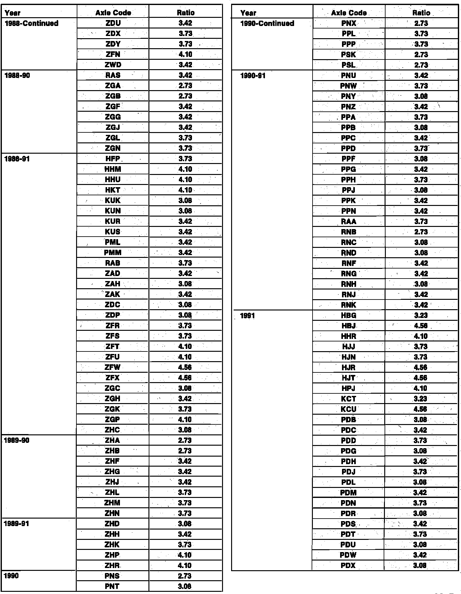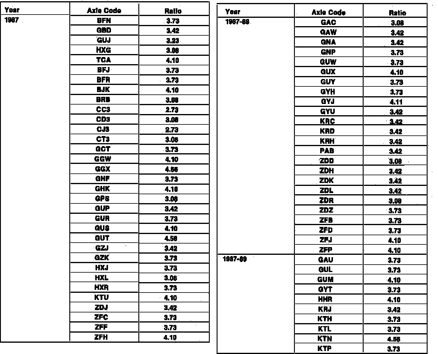 Axle Code and Gear Ratio Identification