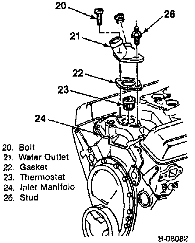 1. Install Thermostat (23) in its housing.
