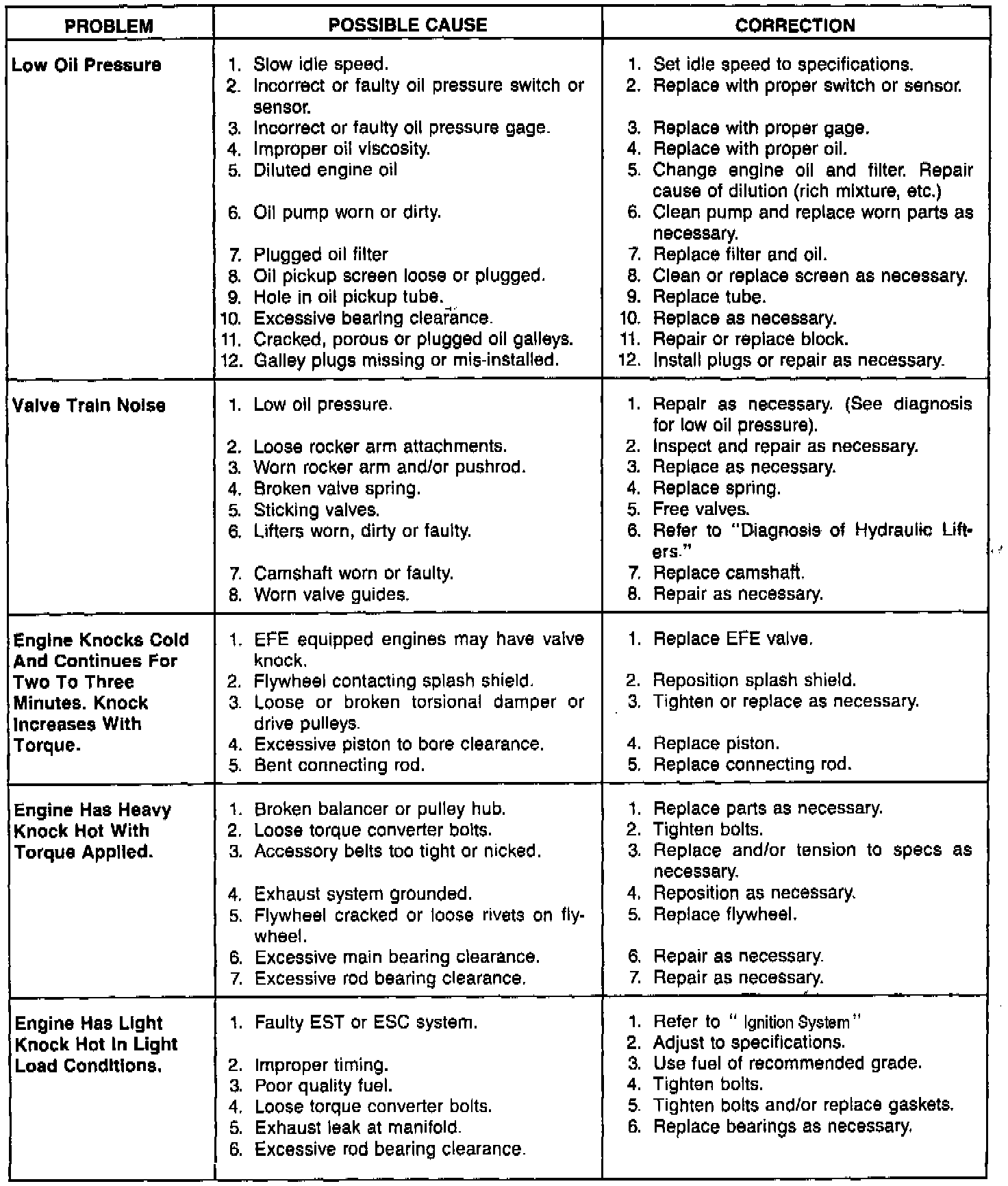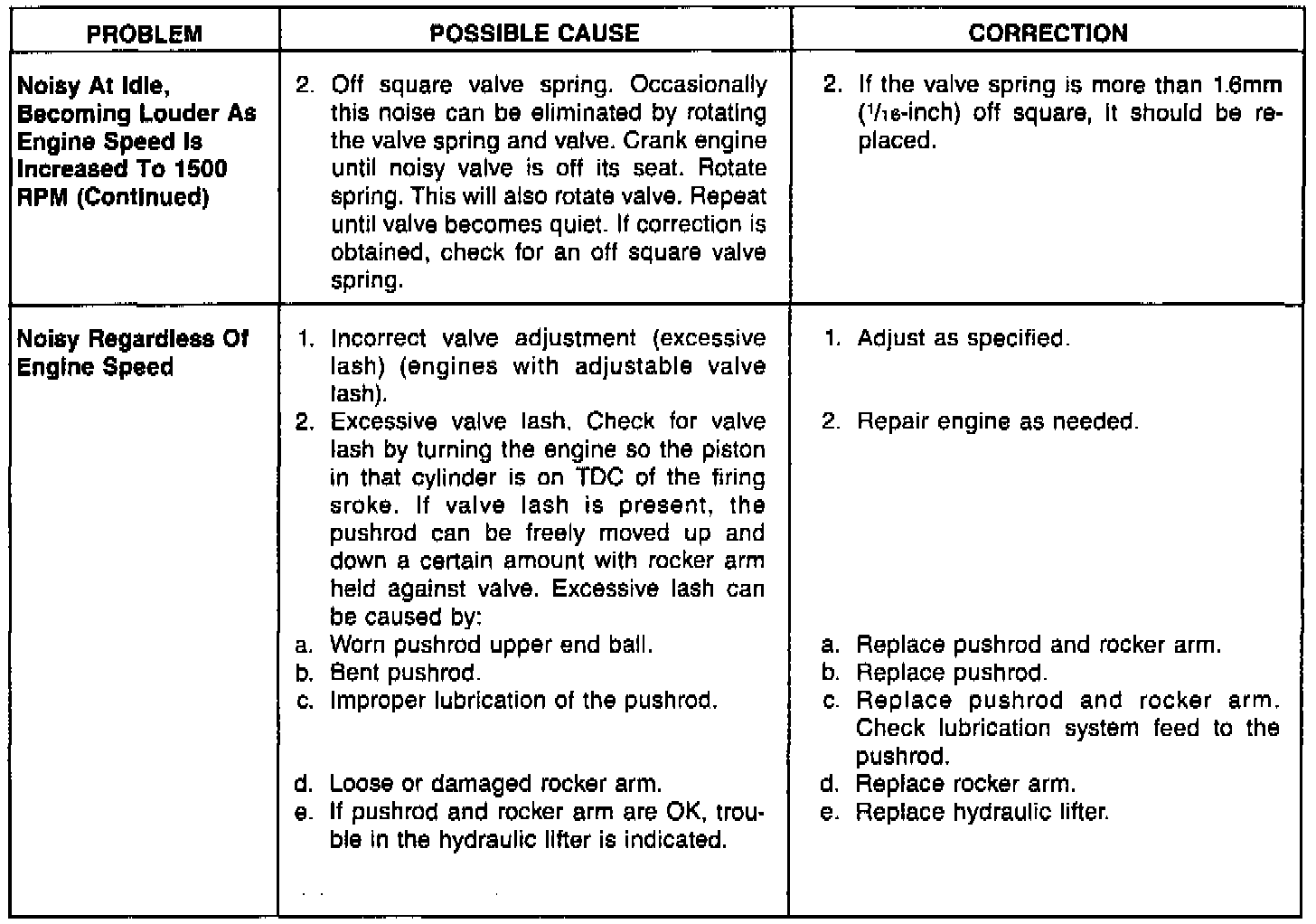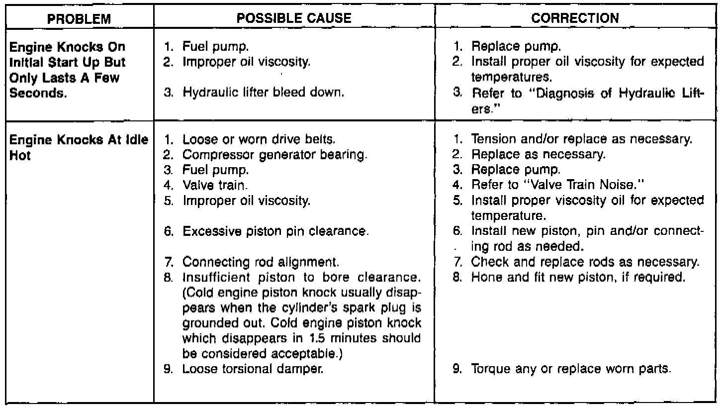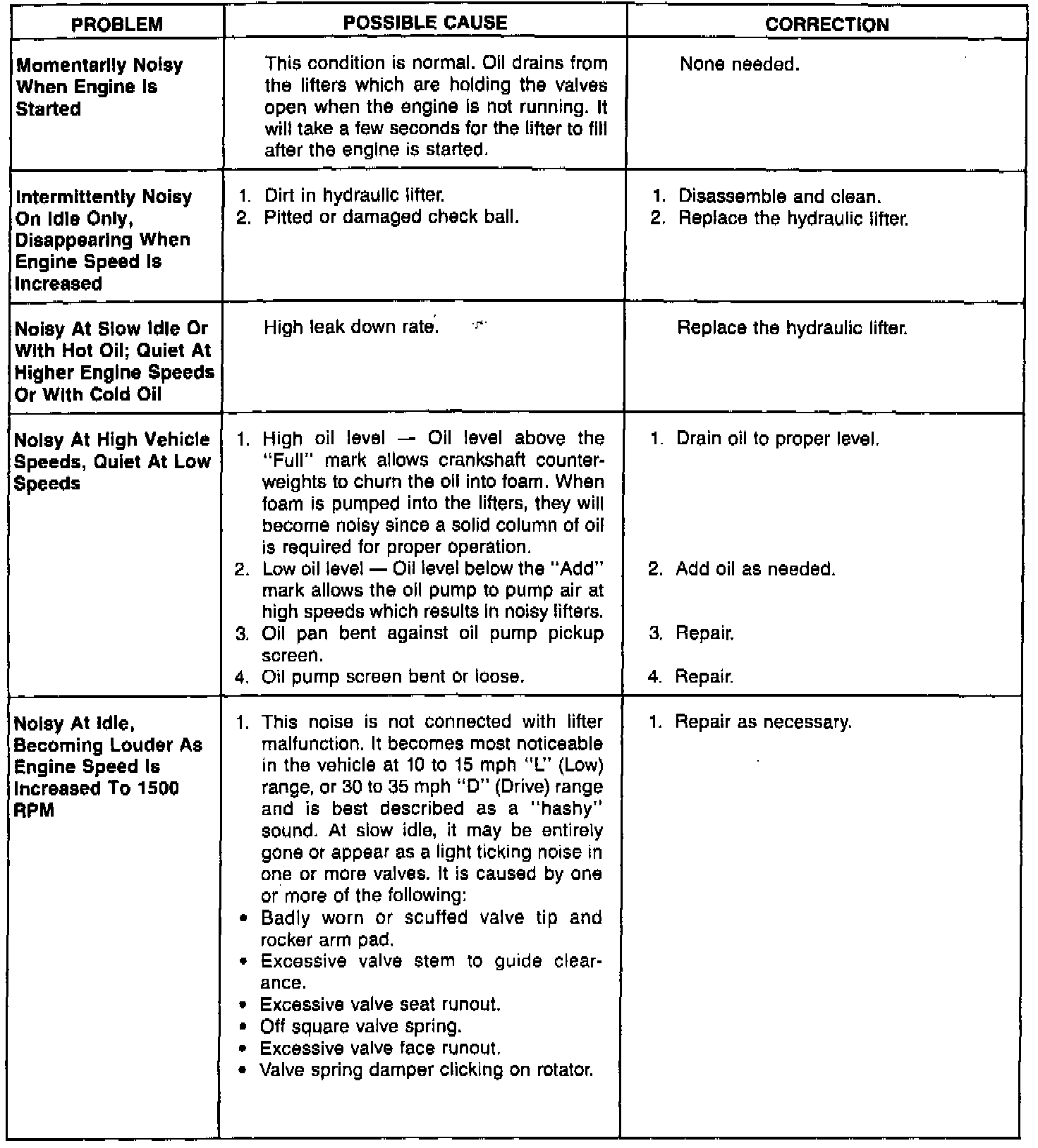 For Hydraulic Lifter Diagnosis see above charts.