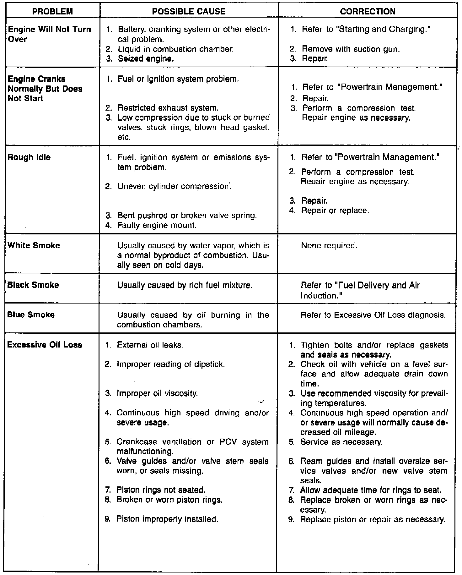 For Engine Mechanical Diagnosis see above charts.