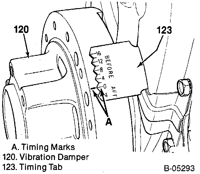 5. Crank the engine one revolution until the timing tab "0" mark and vibration damper mark are again in alignment. This is the number six firing position; the following valves may be adjusted: