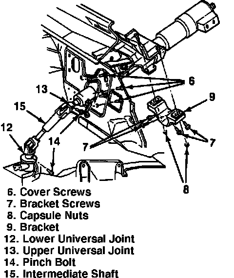 1. Insert column through dash opening. guide shaft into universal yoke, lining up marks made at removal.