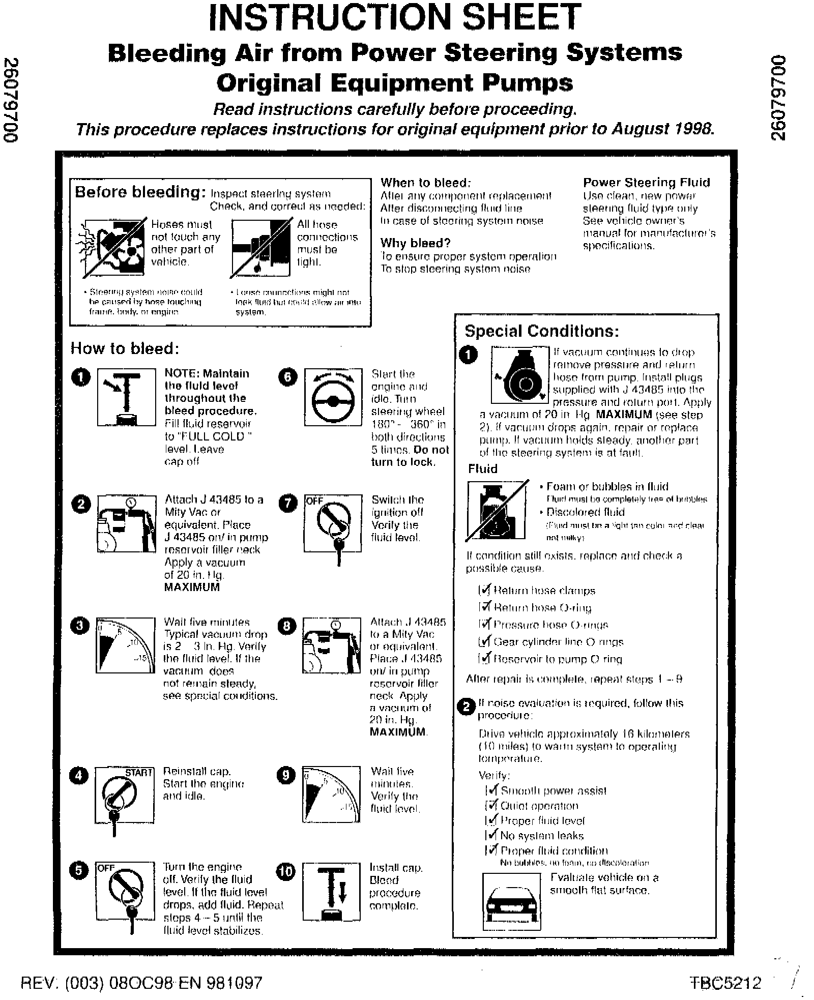 A new essential tool, J 43485 Power Steering Bleeder Adapter, has been sent to all GM Dealers. This new adapter can be used on all power steering systems, including all past models, current models and electric vehicles.
