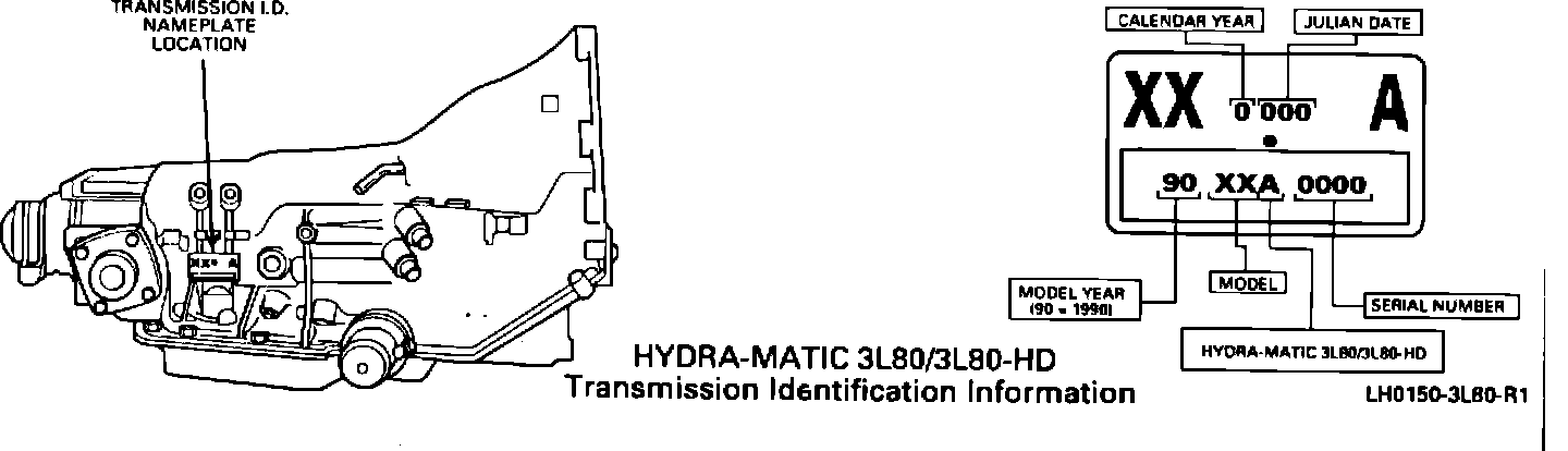Beginning December 21, 1989 (Julian Date 355) all LMA, LWA and SAA 1990 HYDRAMATIC 3L80 (THM 400) transmission models were built with the new Valve Body Assembly (49) and Rear Accumulator Spring (78).