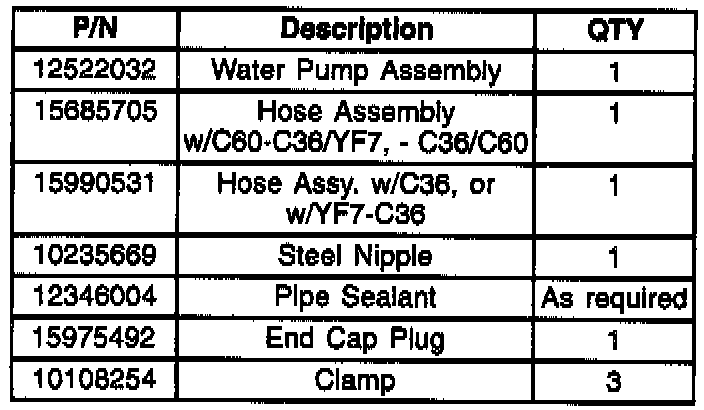 1. Install steel nipple to water pump. Before installing the steel nipple, seal threads with pipe sealant (P/N 12346004) or equivalent. Torque to 24 N-m (18 lb.ft).