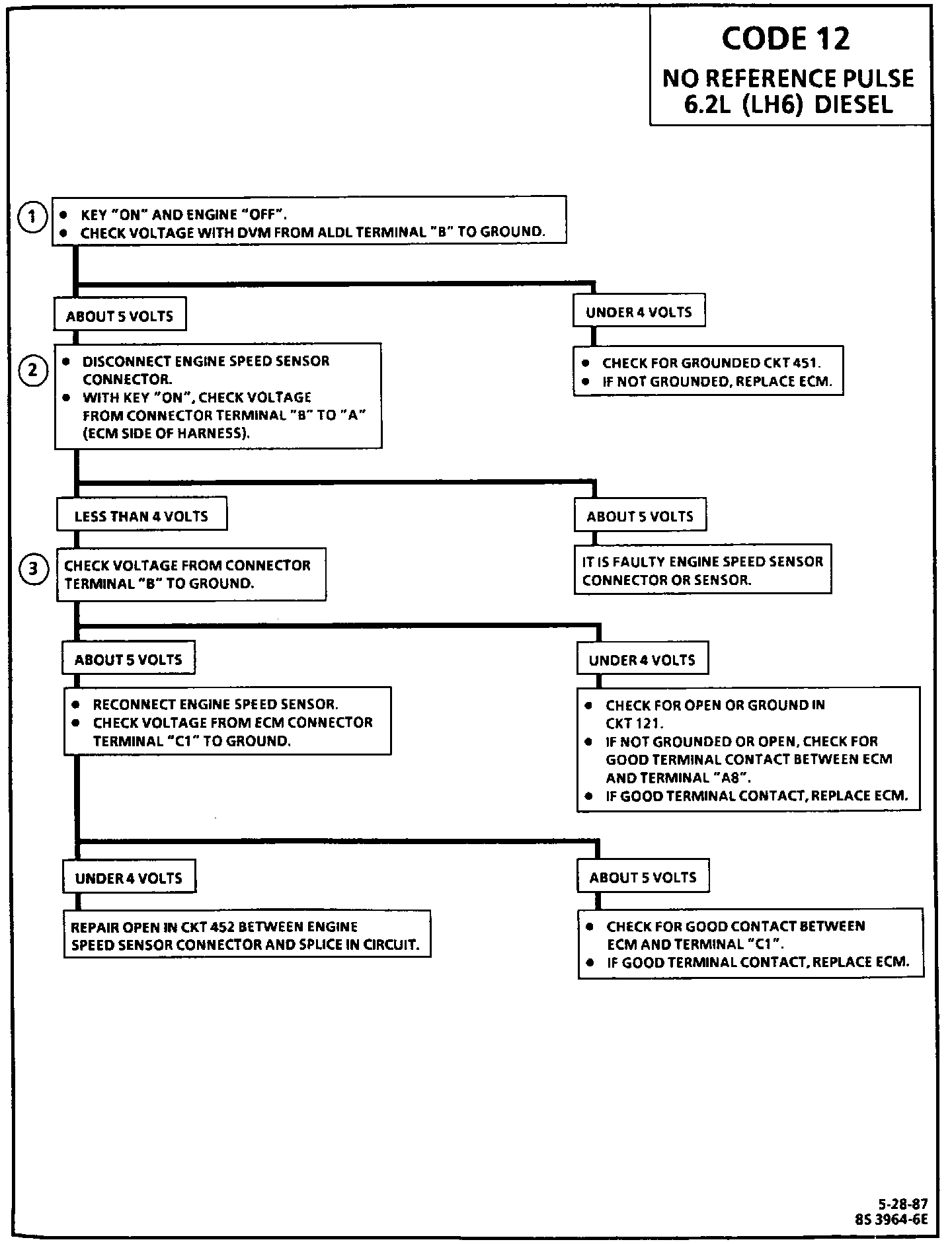 1. Check for a good 5 volt reference. Normally, the ECM should he at about 5 volts for fully charged batteries.