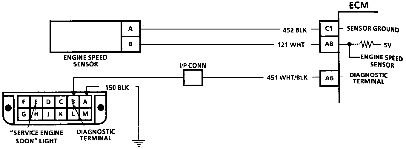 It is sourced by 5 volt reference and allows the ECM to measure engine rpm by the number of times the voltage is pulsed. The engine speed sensor pulses 4 times per revolution.