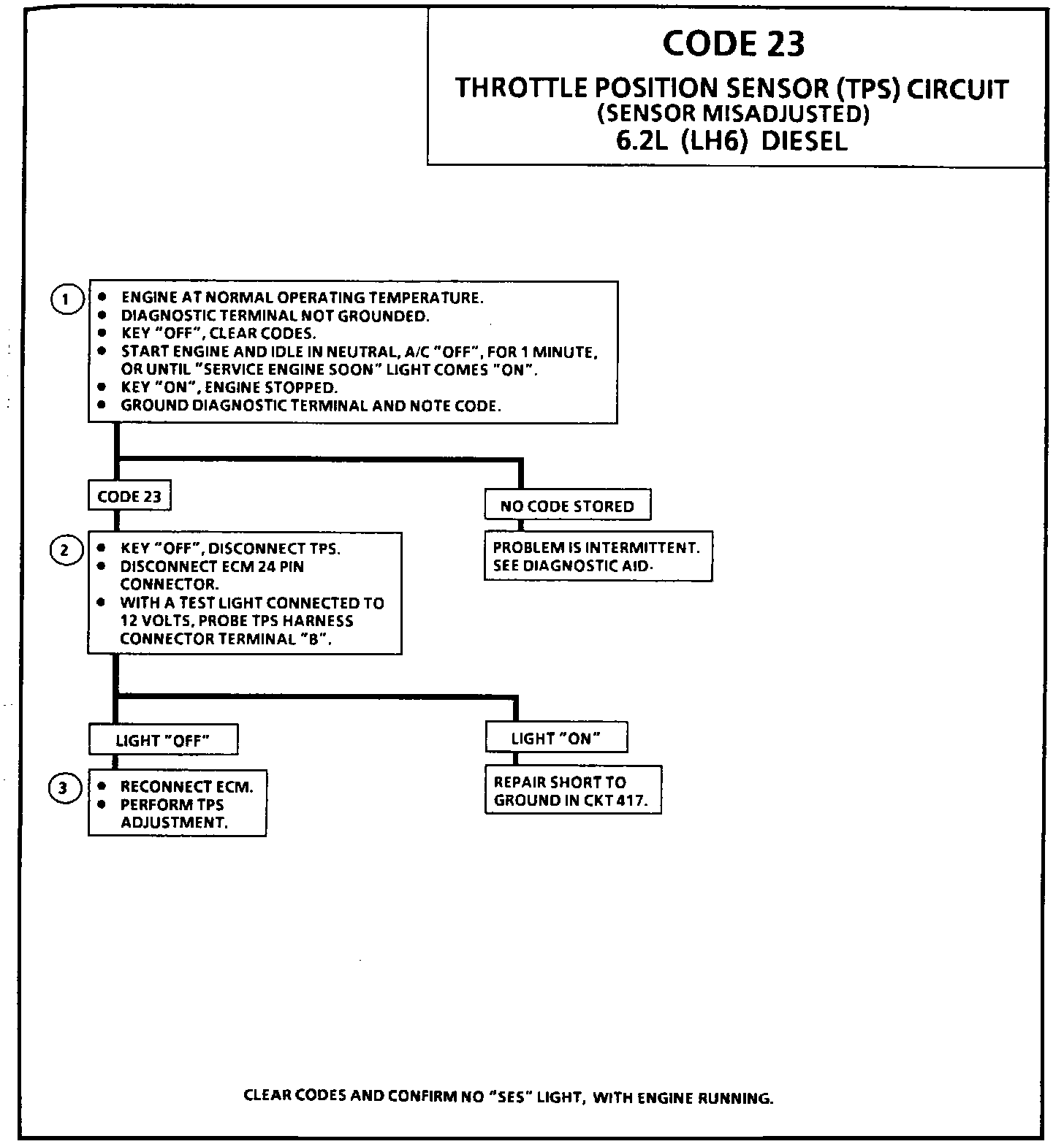 ^ Disregard a Code 23, if "Service Engine Soon" light goes out as soon as the throttle is returned to idle.