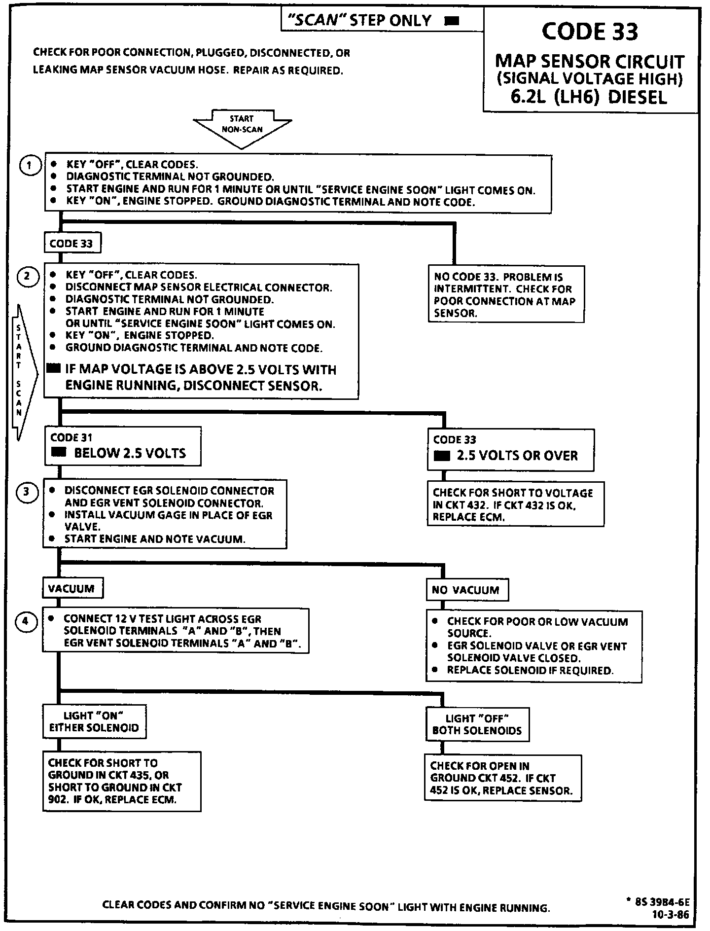 2. If the ECM recognizes and sets Code 33, low MAP signal, the ECM and wiring are OK.