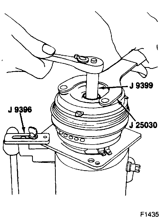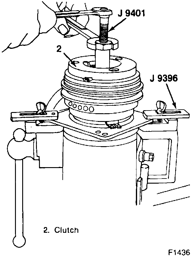 ^ Thread J 9401-B into the clutch plate and hub (2).