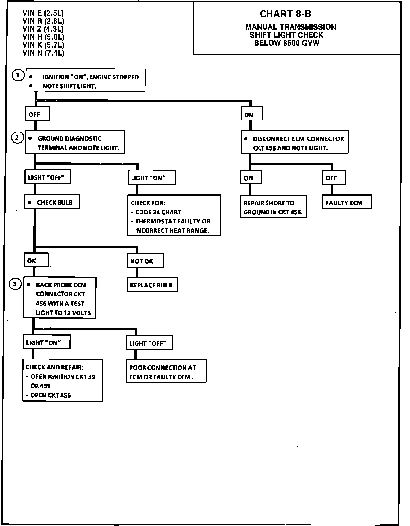 Chart C-8B - Manual Transmission Shift Light Check (Below 8500 GVW):