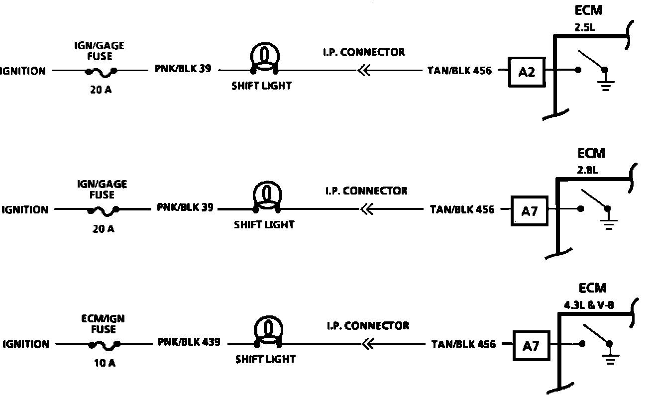 1. This should not turn "ON" the shift light. If the light "ON", there is a short to ground in CKT 456 wiring, or a fault in the ECM.