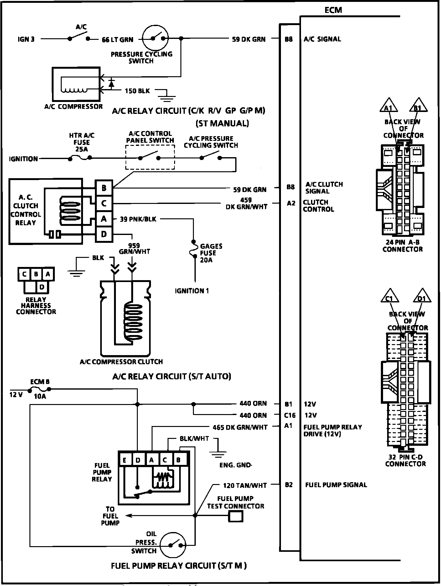 A1 = FUEL PUMP RELAY DRIVE (12V).