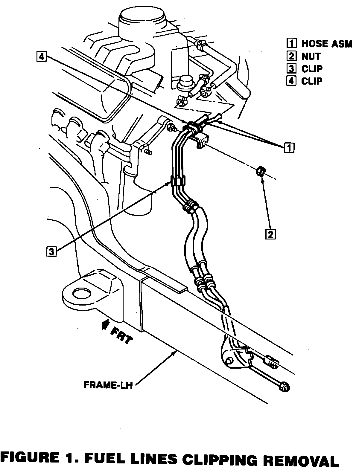 3. Remove and retain nut (2, Fig. 1) holding existing metal fuel line clip (4, Fig. 1) to transmission housing and discard metal clip. Also, remove plastic fuel line clip (3, Fig. 1) and discard.