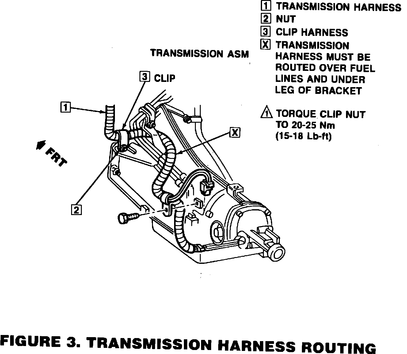 9. Install transmission wiring harness clip (3, Fig. 3) on lower stud of transmission housing and fasten with nut. Torque nut to 20-25 N-m (15-18 lb.ft.).