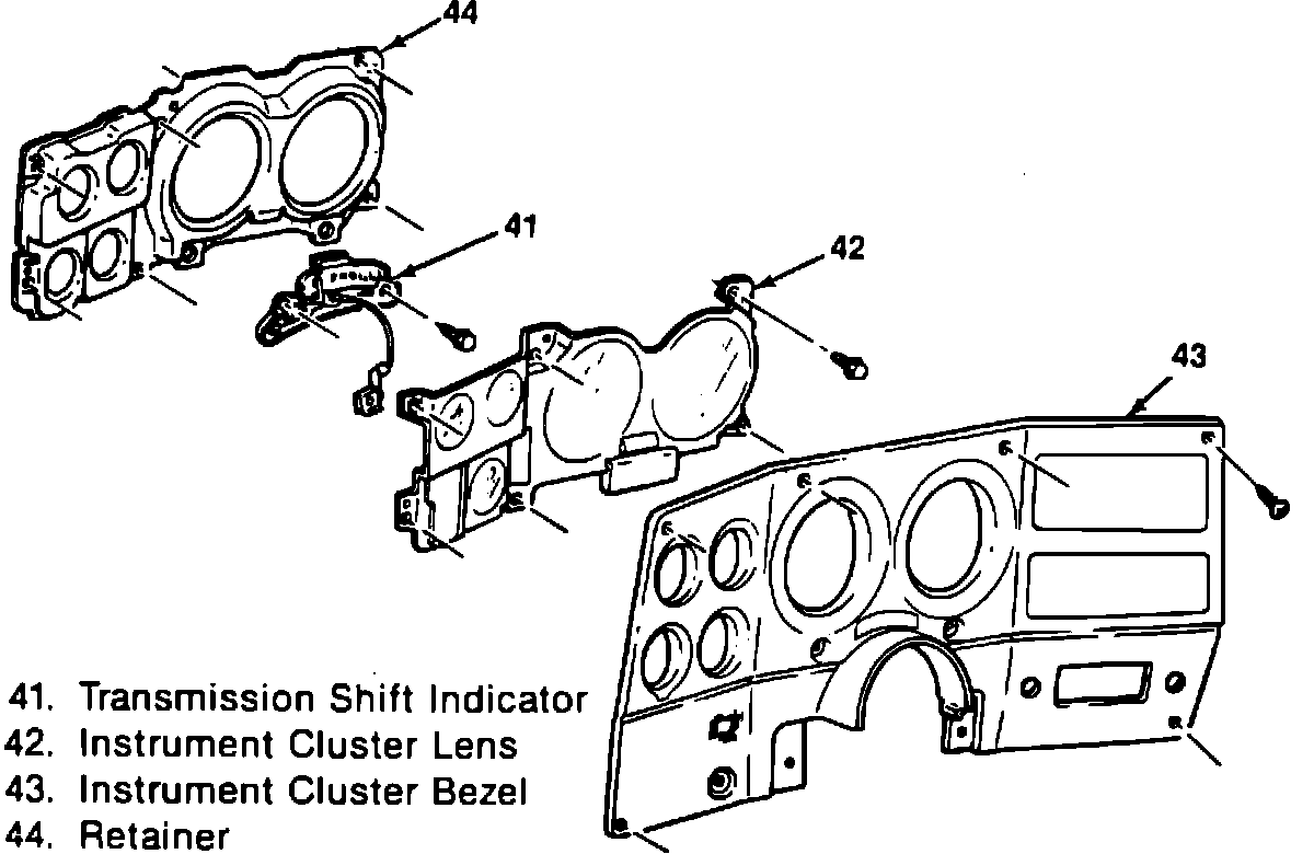 7. Disconnect all lines and electrical connectors that will interfere with cluster removal.