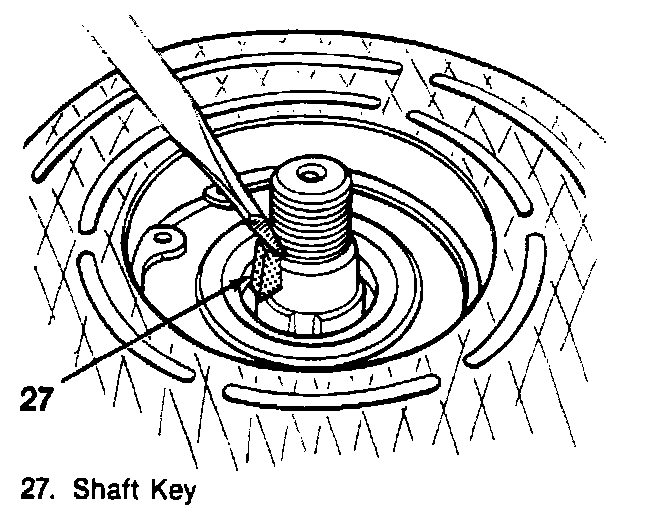 3. Shaft key (27) by lightly tapping it loose with a slot screw driver and hammer.